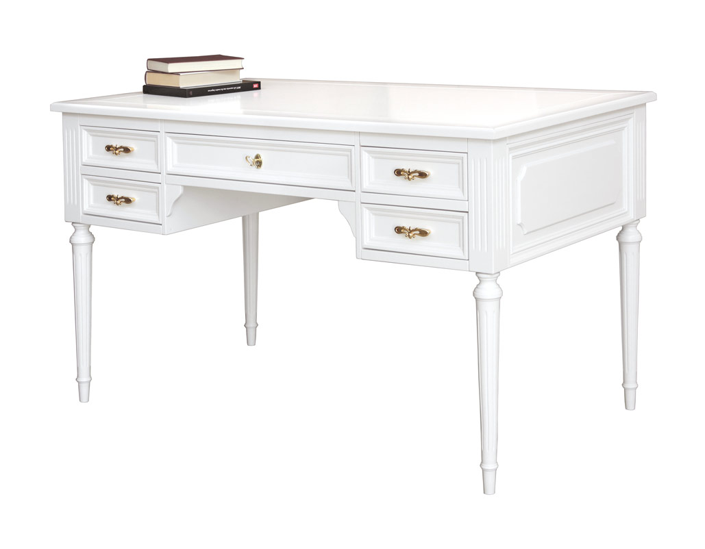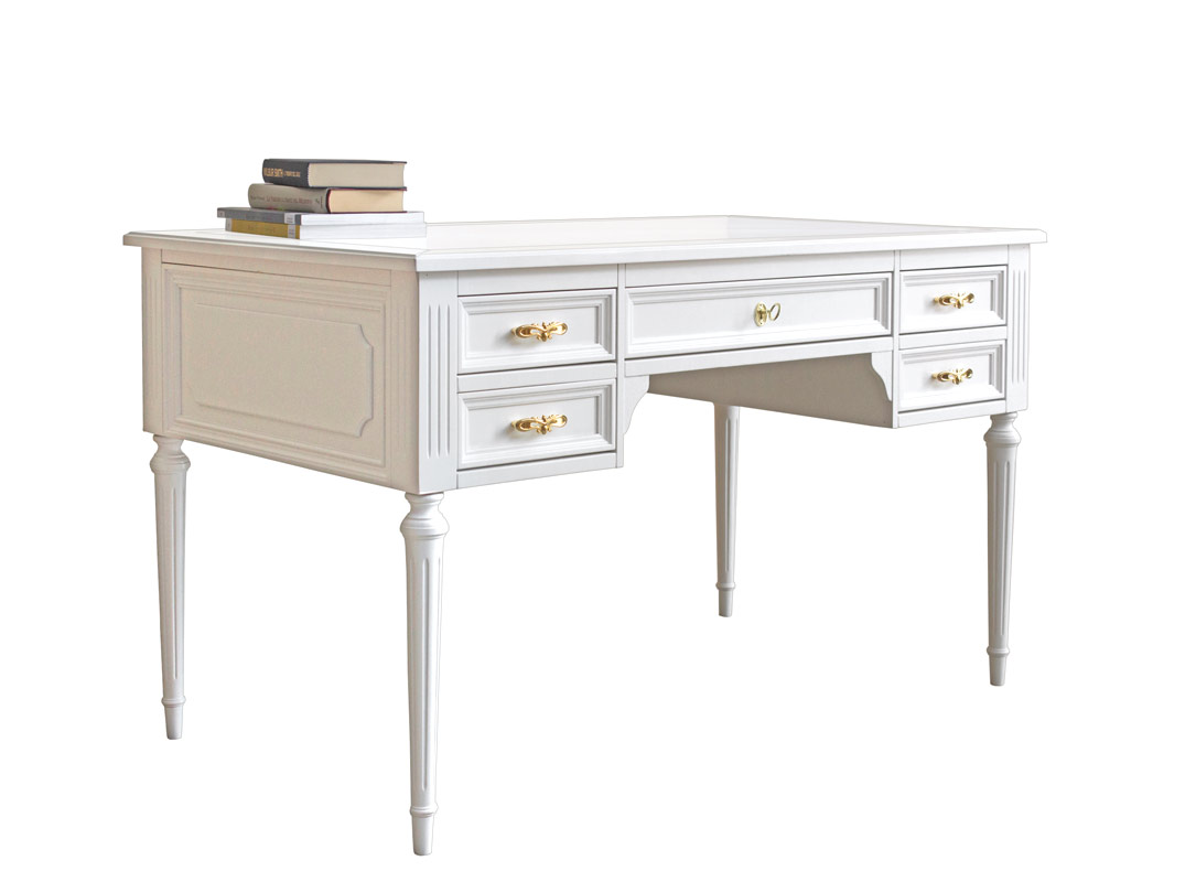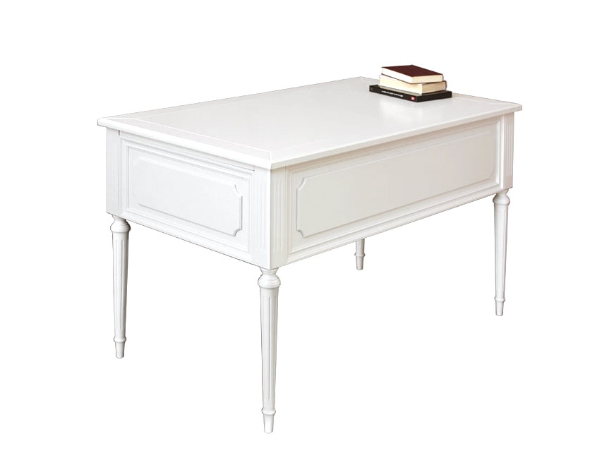 Bellissima scrivania in stile classico dotata di struttura interamente in legno di faggio, ciliegio e toulipier (nessun elemento in melamminico) qui presentata nella versione laccata. Questa finitura permette la perfetta integrazione anche in contesti di arredo di vario stile: stacca in modo deciso ed originale in un ambiente dal taglio moderno; illumina e porta vivacità in un ambiente arredato con stile molto classico; è protagonista di ambienti arredati in modo minimale o molto semplice...