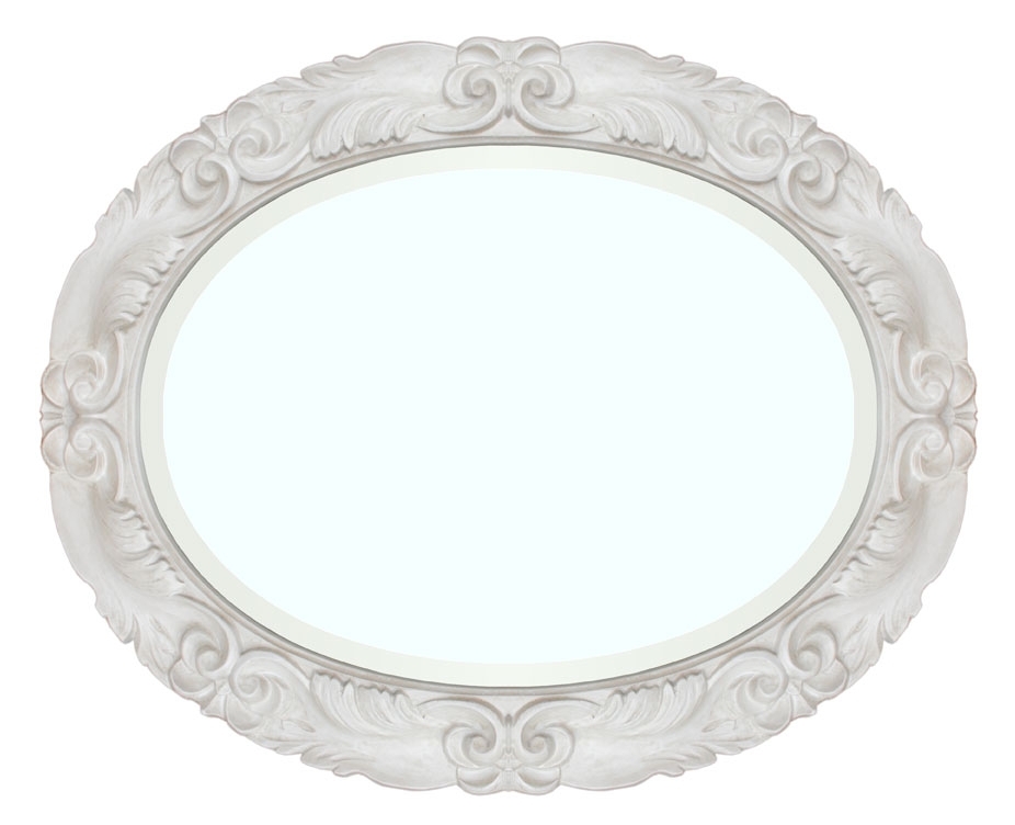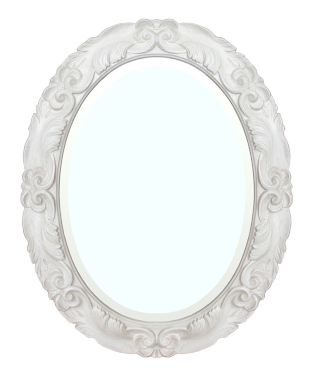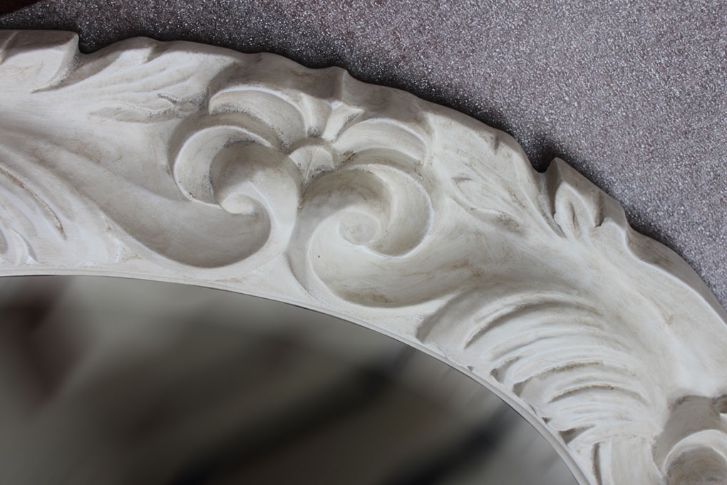 Deliziosa e raffinata specchiera ovale realizzata in legno e pasta di legno.