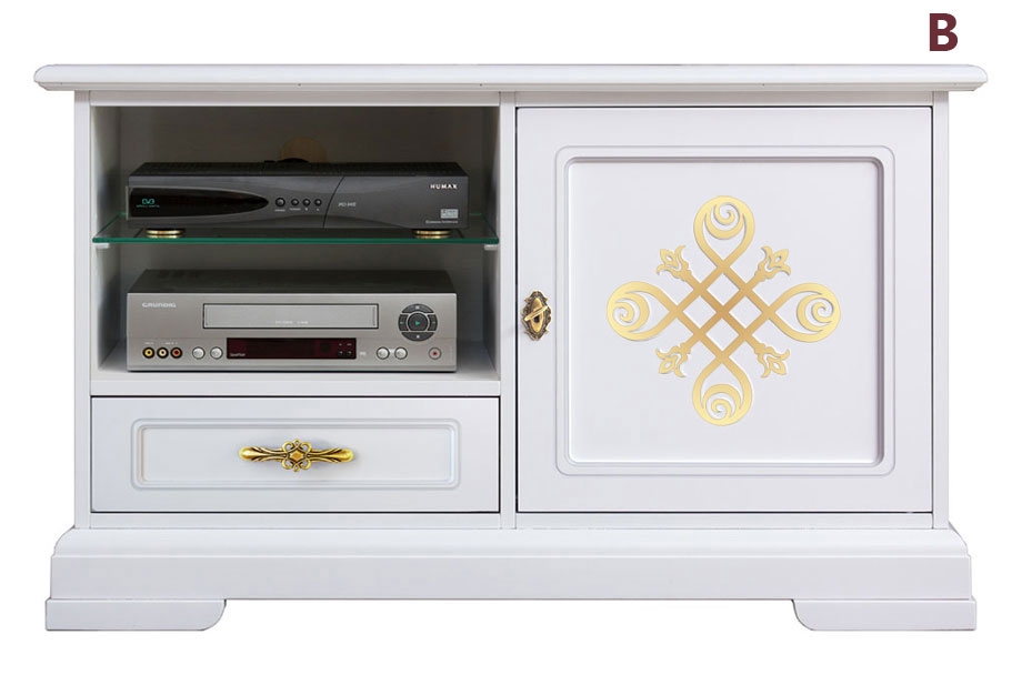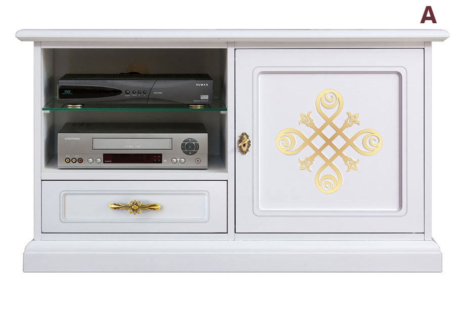La funzionalità è, tuttavia, massima. Un'anta e un cassetto assicurano una grande capienza e un grande vano, dove è collocato un ripiano in cristallo regolabile in altezza o, all'occorrenza, removibile permette l'alloggiamento di varie apparecchiature collegabili al televisore.