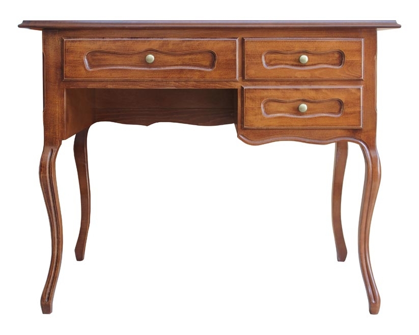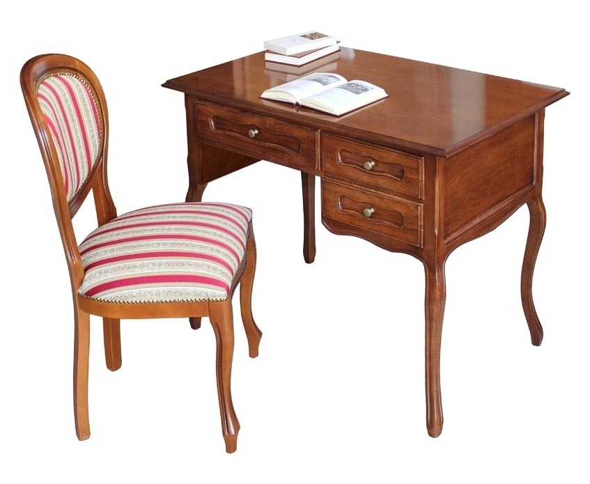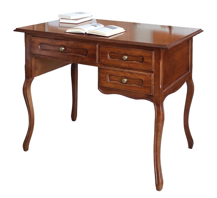 Piccolo scrittoio che in uno spazio contenuto offre la comodità di un ampio piano e la capienza di tre comodi cassetti.