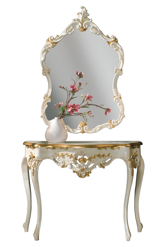 Consolle e specchio di lusso appartenente alla migliore tradizione classica, reinterpretata con nuovi colori e tonalità dalla eleganza contemporanea.