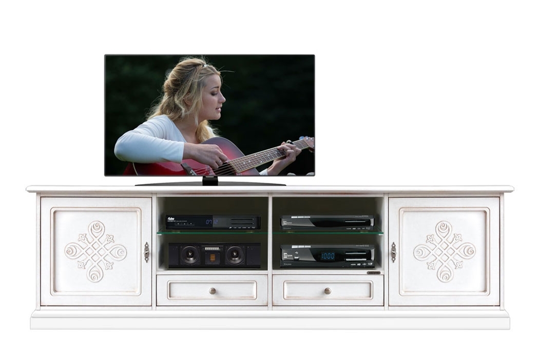 Nella collaudata struttura del mobile tv da parete sono stati inseriti elementi di stile decisamente unici.