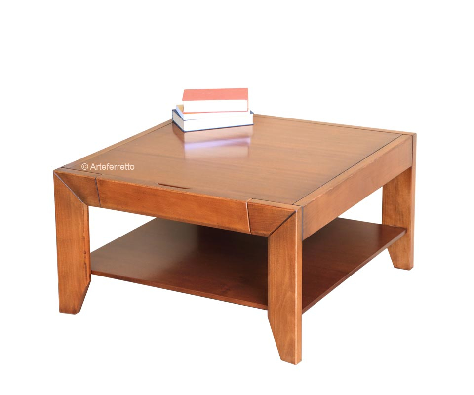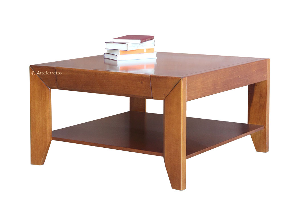 Tavolino con cassetto dalla linea semplice e lineare che fa apprezzare in modo particolare la calda tonalità del legno.