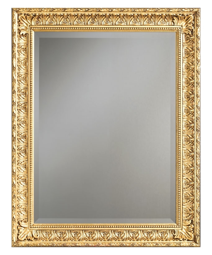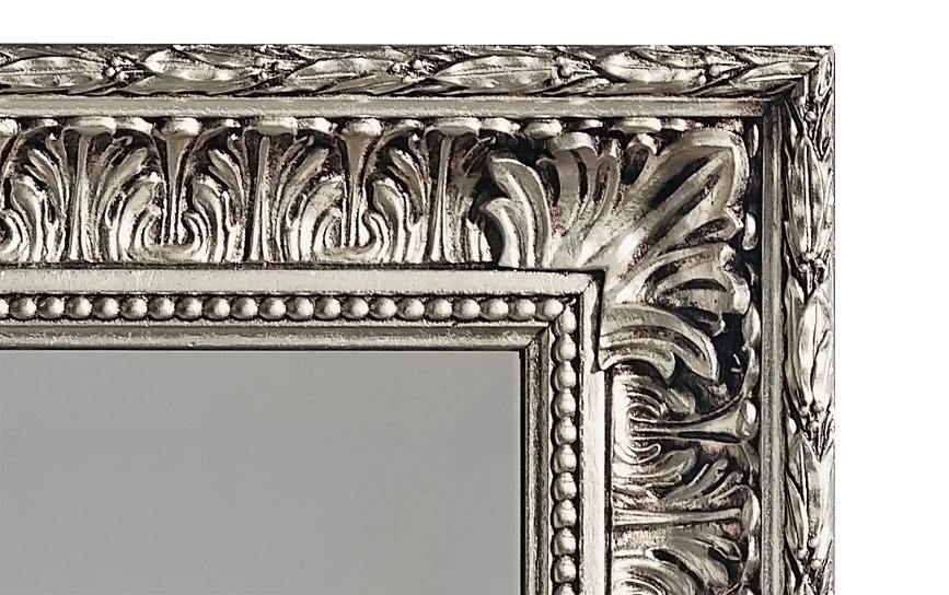 In questa specchiera classica, la lavorazione della cornice, particolarmente accurata, lascia trasparire un'attenta cura per i particolari e una minuziosa applicazione della foglia oro o argento.