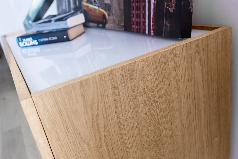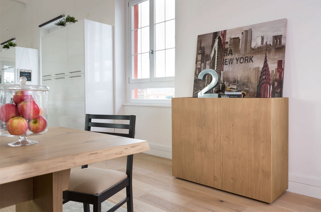 La bellezza del legno di rovere naturale è l'elemento caratterizzante di questo mobile.
