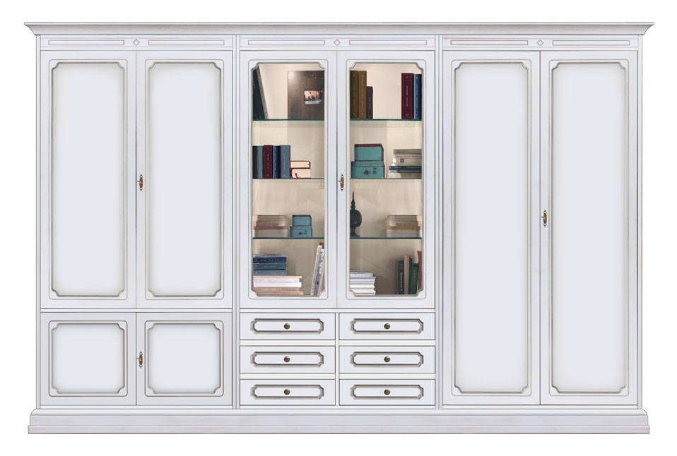 Le ante centrali, in vetro, alleggeriscono il mobile e danno luminosità all'insieme.