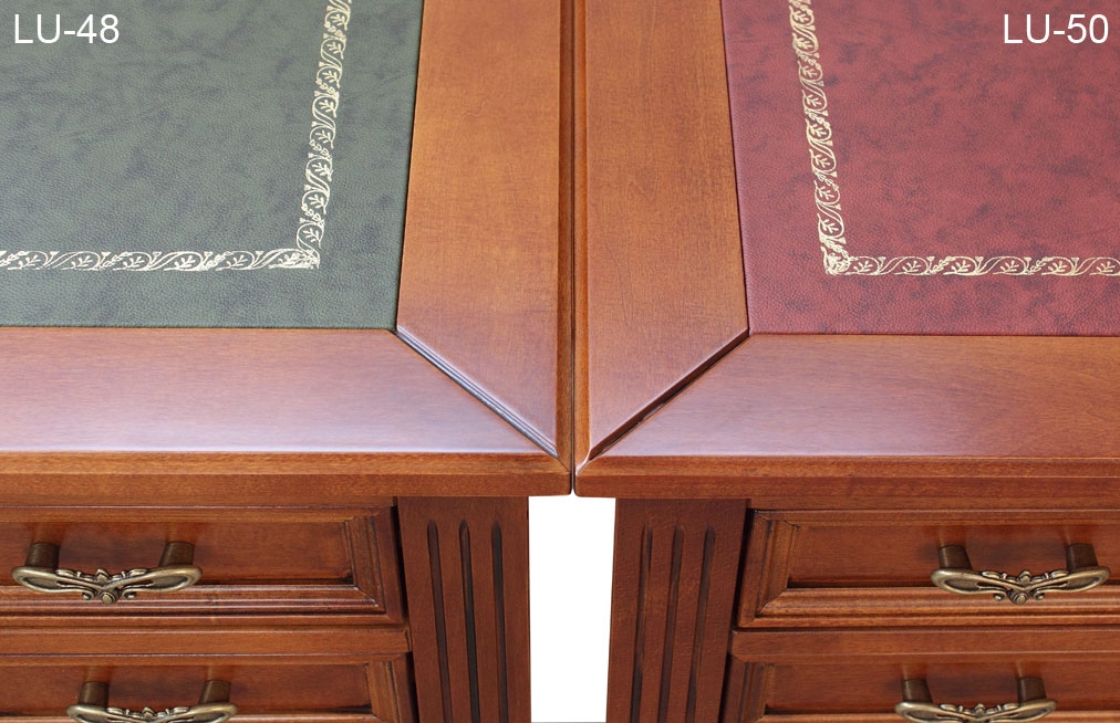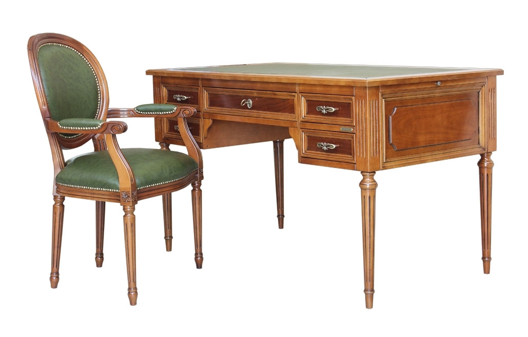 La struttura solida e imponente associata alla particolare lavorazione del legno e al piano con vera pelle, conferiscono alla scrivania importanza e al tempo stesso una raffinata eleganza. Queste caratteristiche però, celano un fondamentale aspetto di funzionalità dello scrittoio, dato dai 5 capienti cassetti.