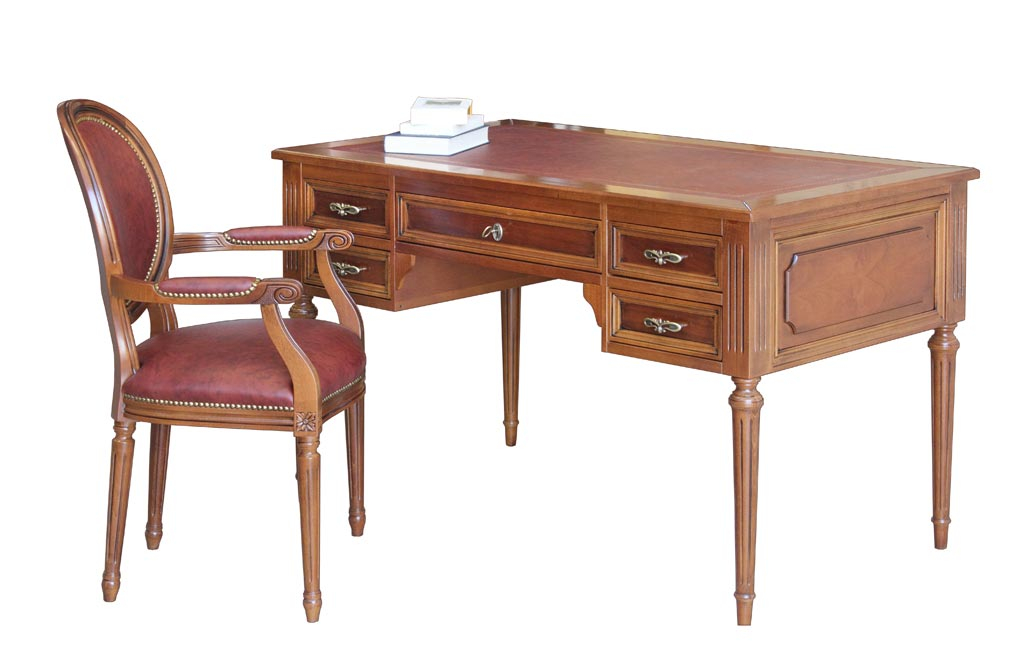 Articolo 1381 - Scrittoio Luigi XVI 5 cassetti e vera pelle.