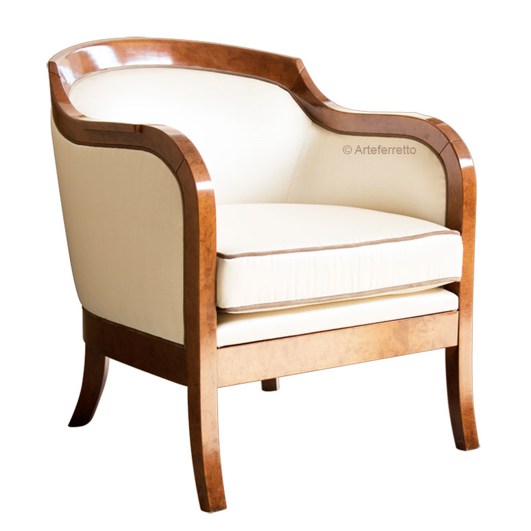 Bellissima poltrona che possiede tutto il fascino del legno modellato in linee che solo il miglior design made in Italy sa esprimere.