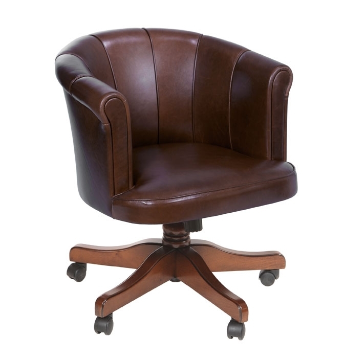 Poltrona da ufficio con ruote e struttura in legno.
