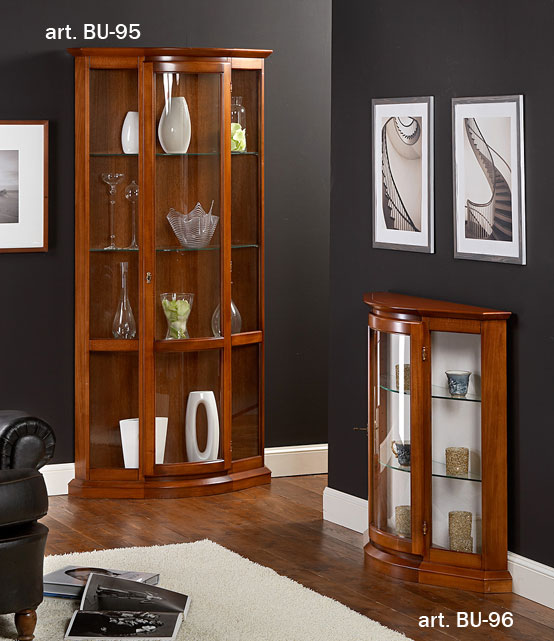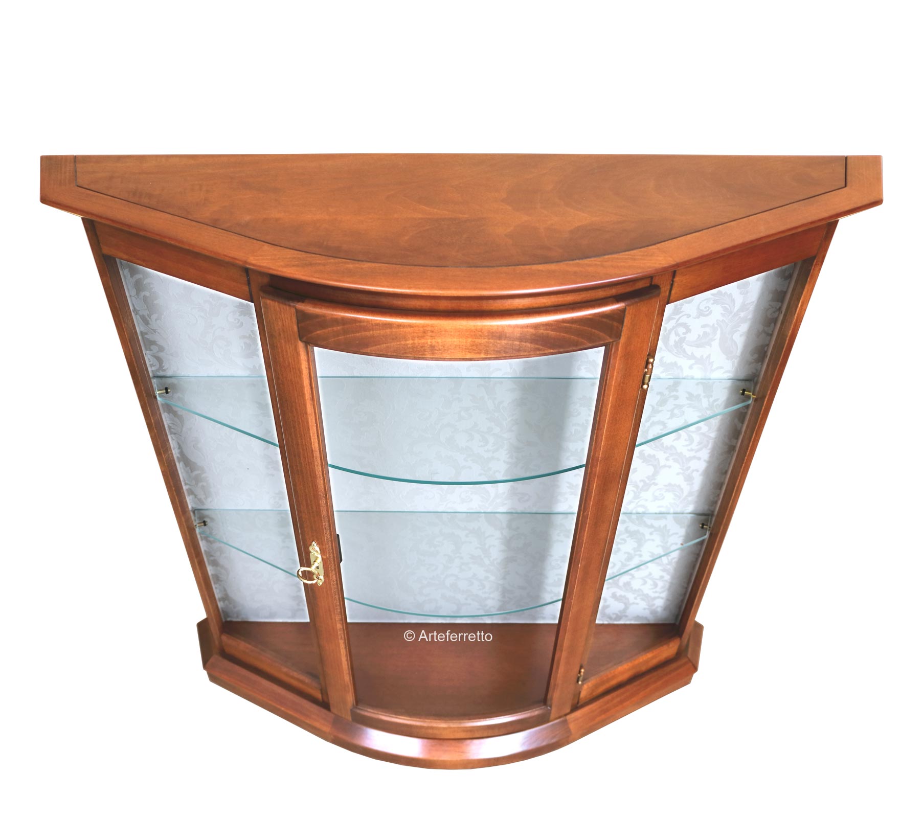Raffinata vetrina bassa salvaspazio realizzata con procedimenti artigianali tra i più apprezzati.