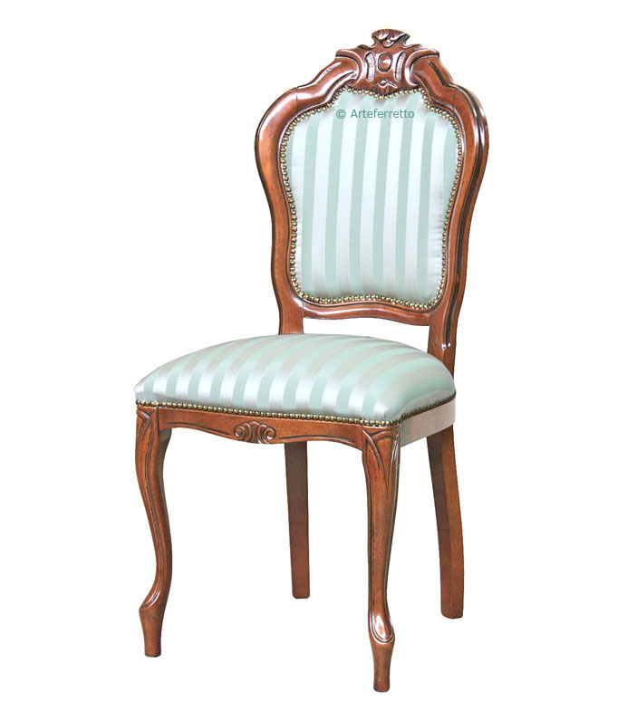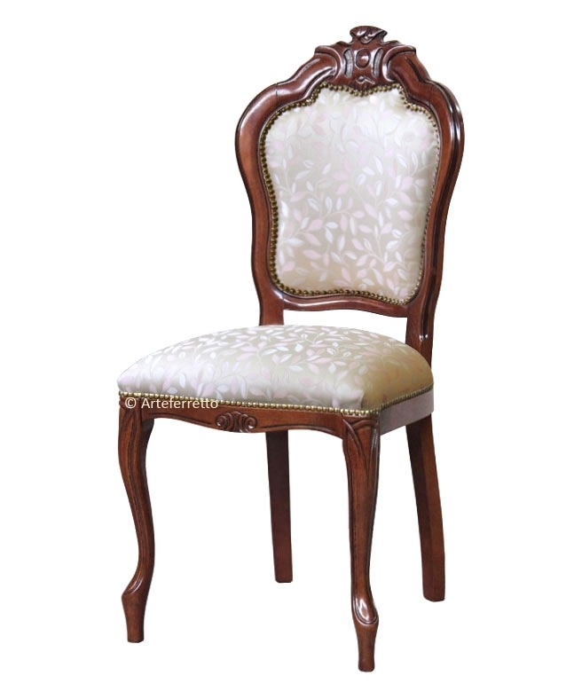 Sedia raffinato intaglio imbottita e tappezzata a mano da esperti artigiani specializzati nella lavorazione di mobili in stile.