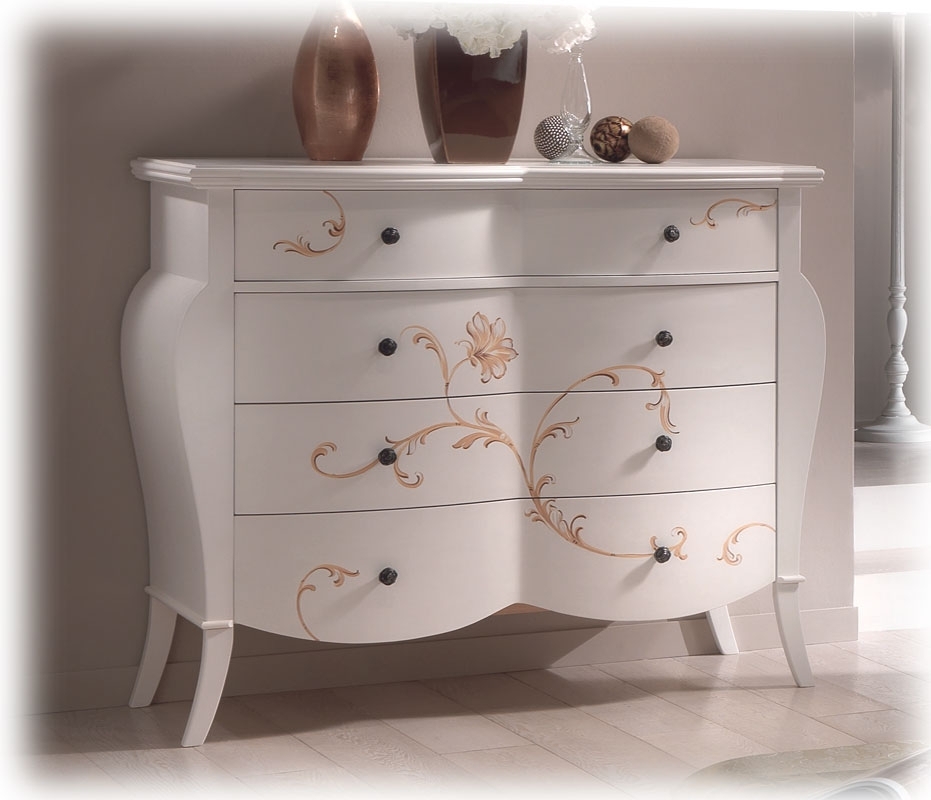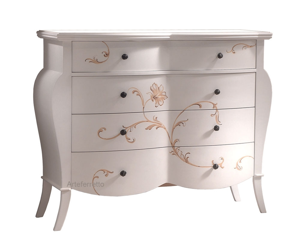 La sua armonia, data da forme morbide ed accattivanti, è accentuata dal bellissimo decoro floreale che si estende sulla facciata di tutti i grandi e comodi cassetti del mobile.