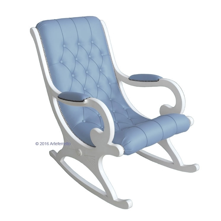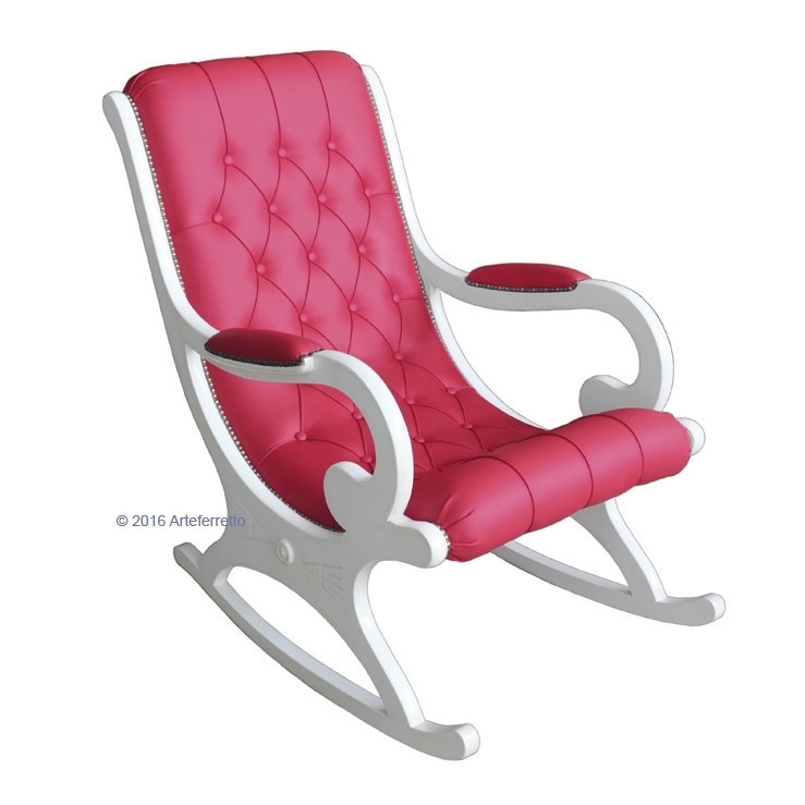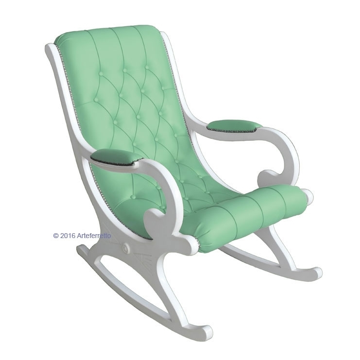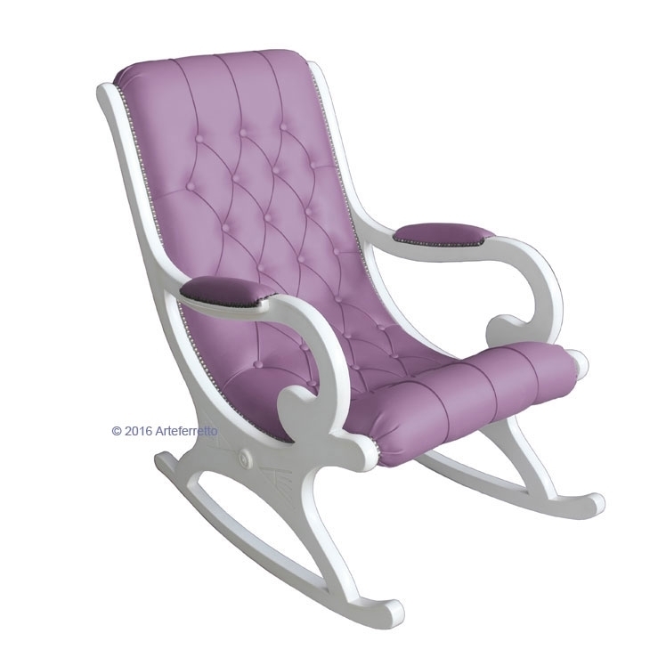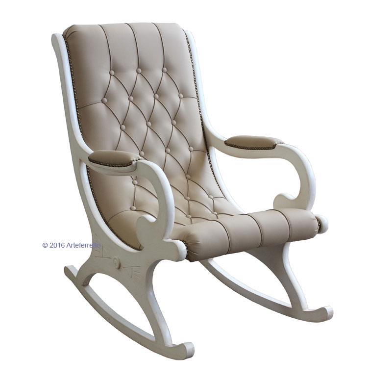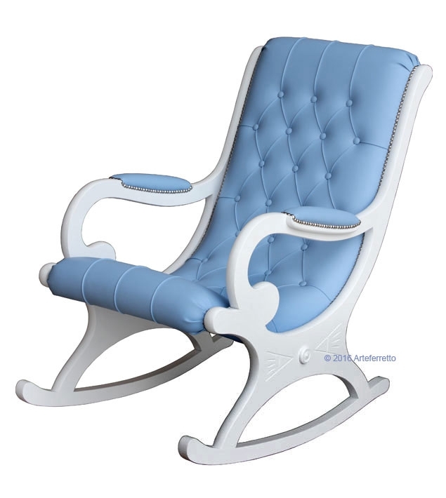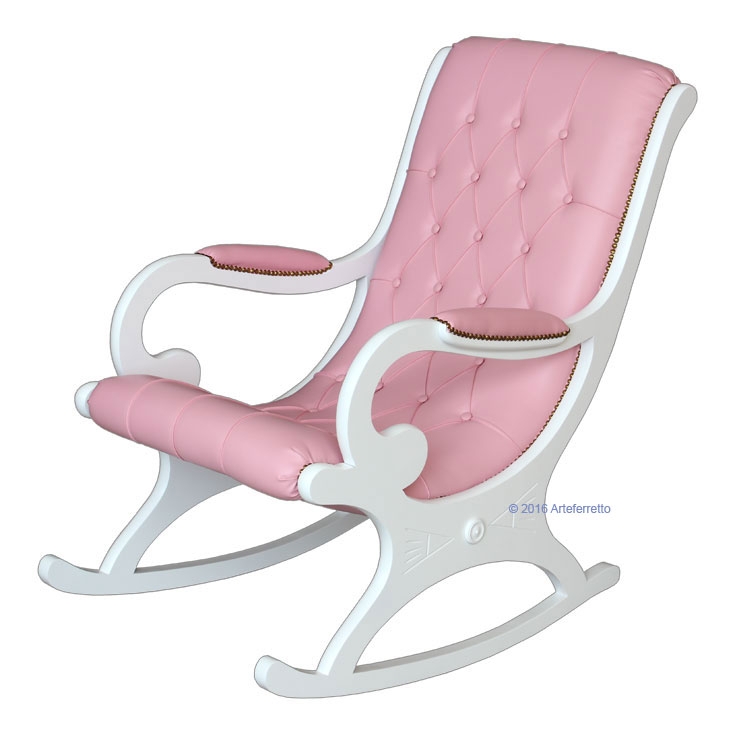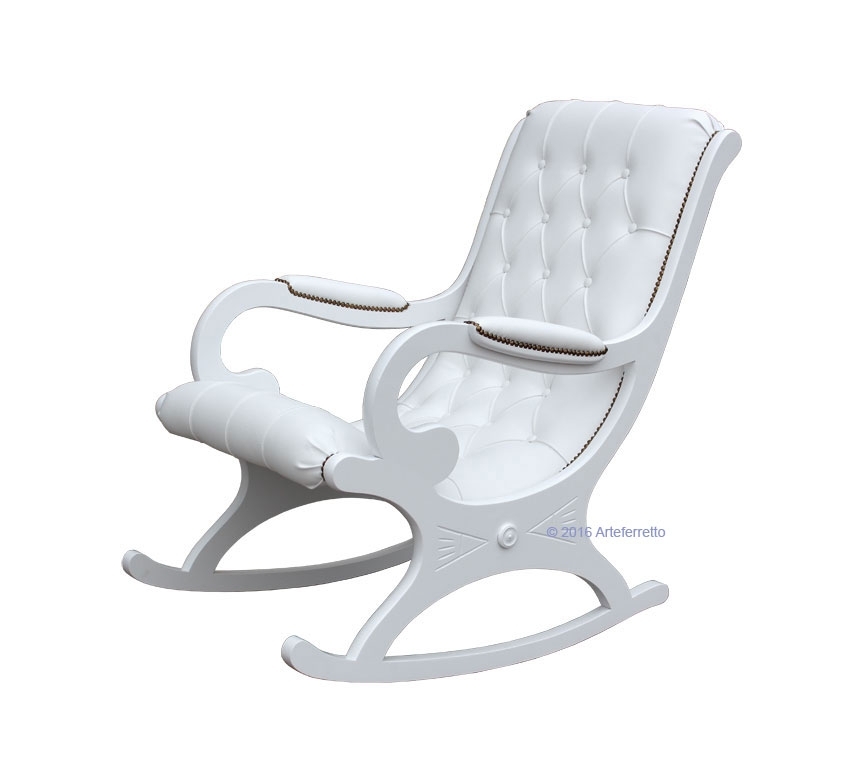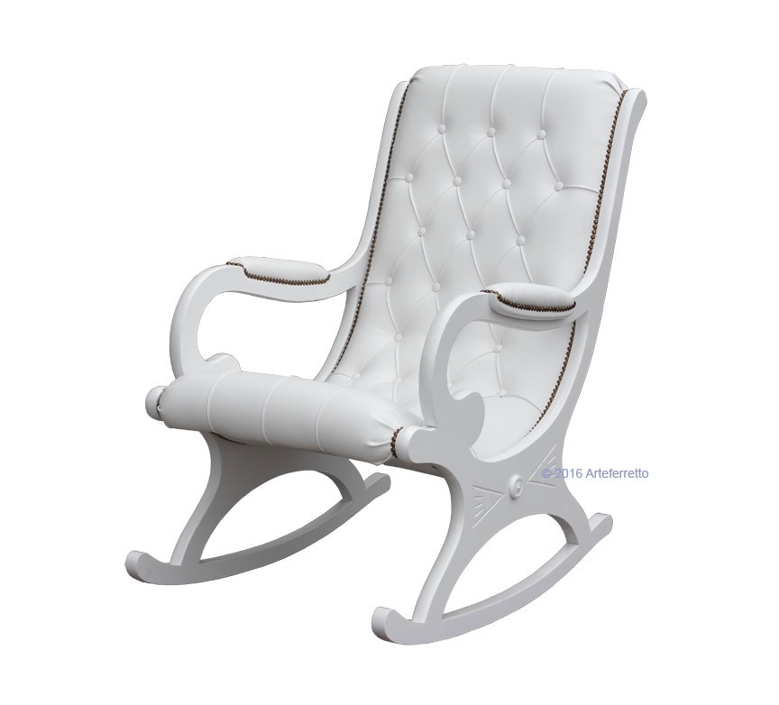 L'imbottitura di questa poltrona a dondolo, frutto del lavoro certosino di abili ed esperti tappezzieri, è realizzata con ecopelle di prima qualità.