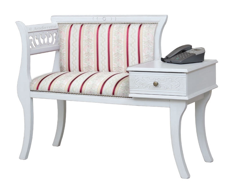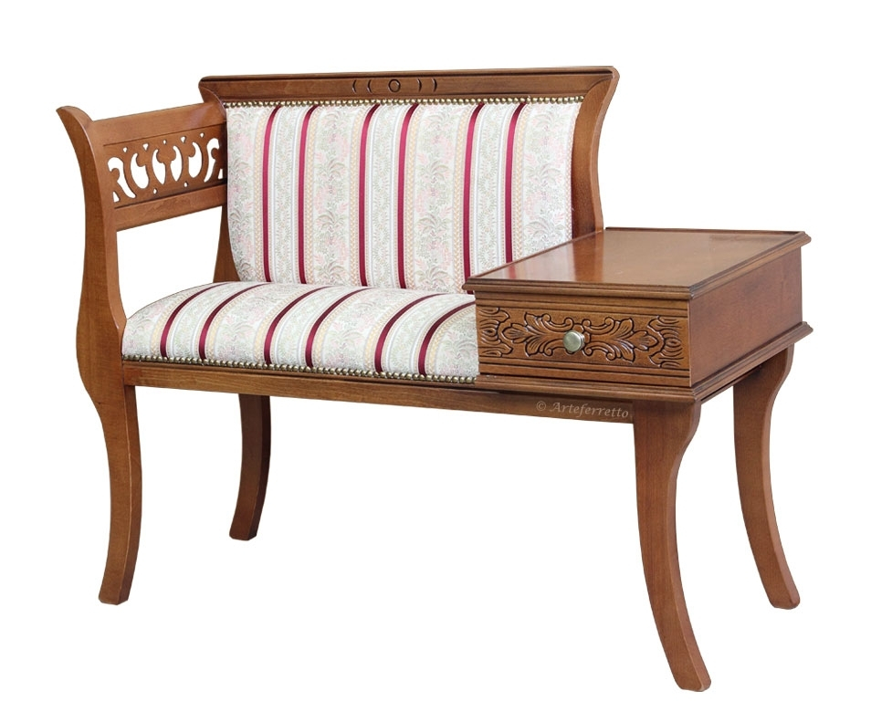 Graziosa soluzione che combina la praticità di un ampio cassetto e un comodo piano d'appoggio alla raffinata classicità di un divanetto in stile.