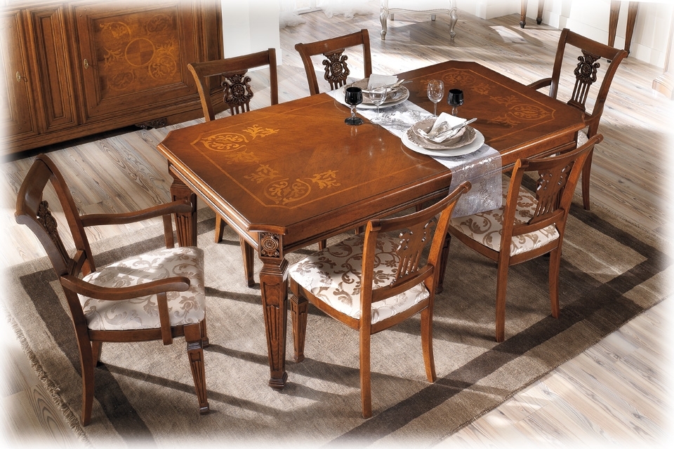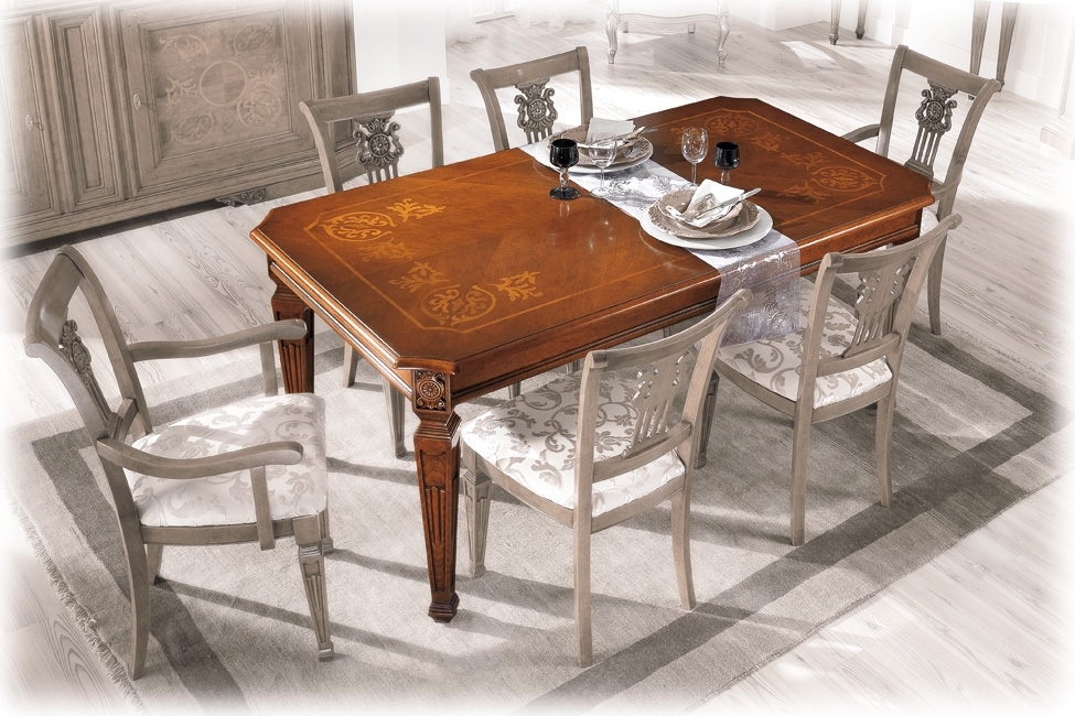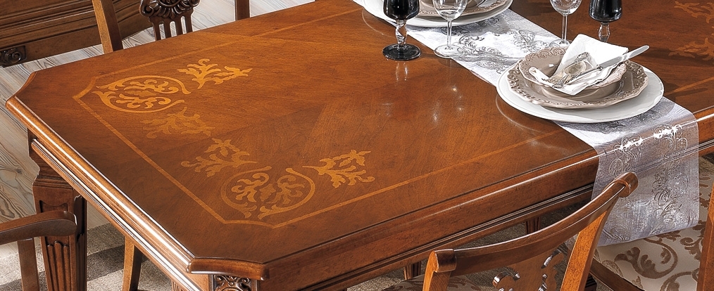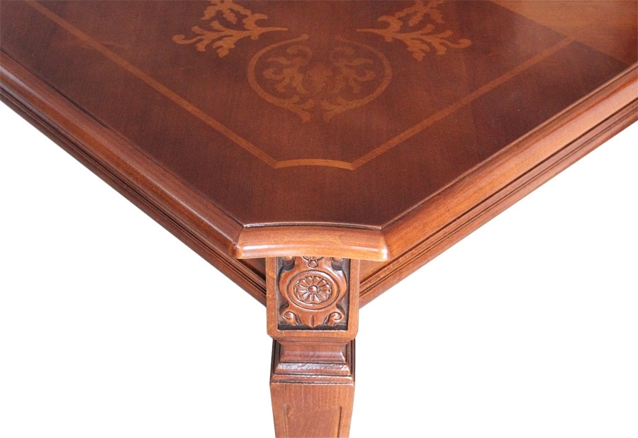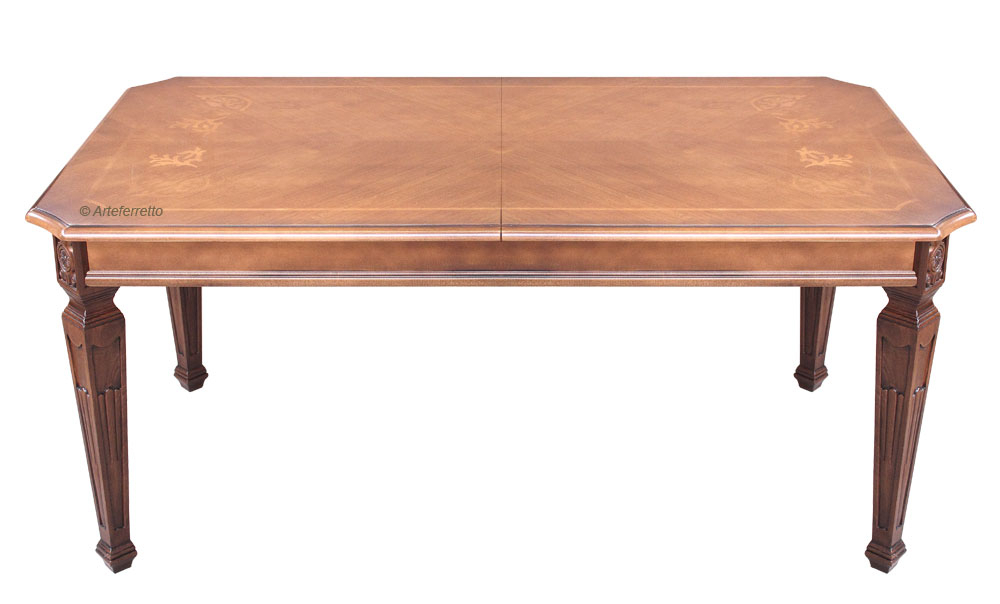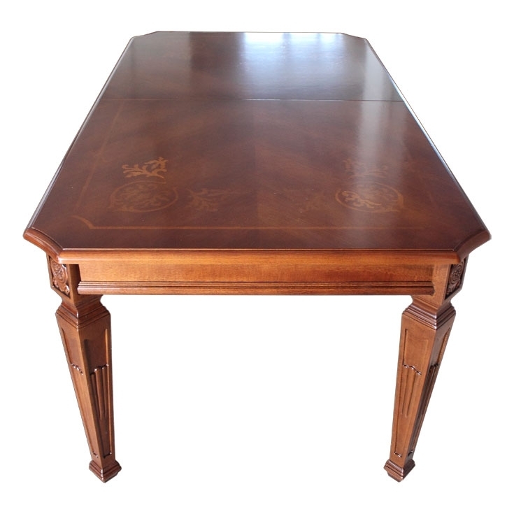 Splendido tavolo intarsiato sul piano e allungabile.