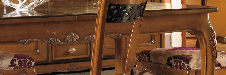 Tavolo intagliato manualmente su legno di prima qualità e dalle raffinate lavorazioni.