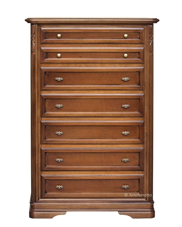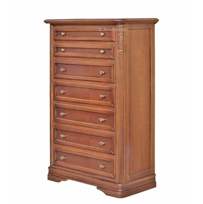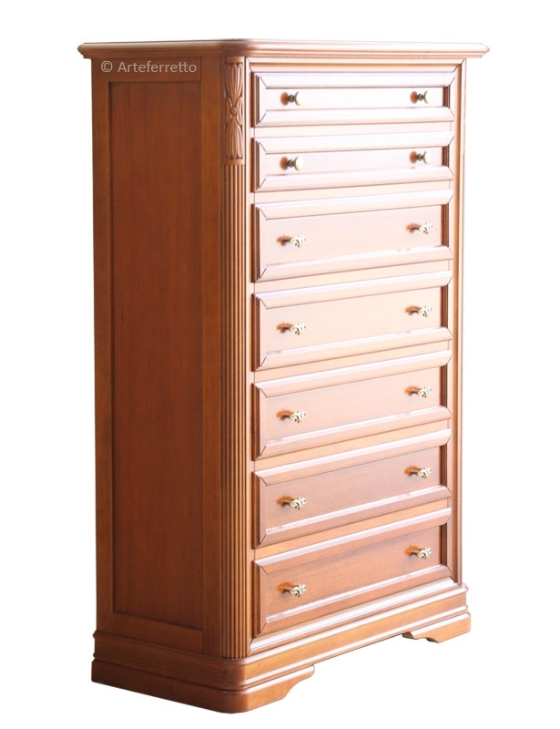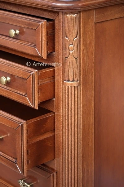La facciata dei cassetti è arricchita da un bel riquadro di cornici che donano maggior classicità alla sua linea.