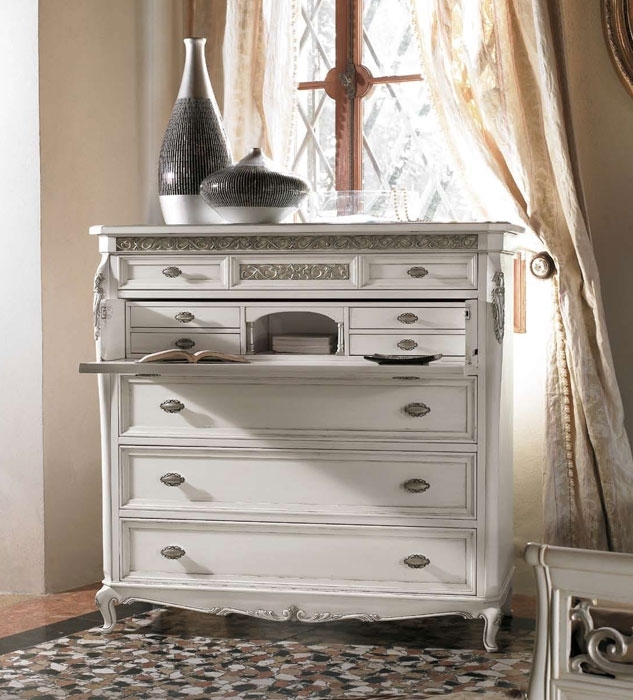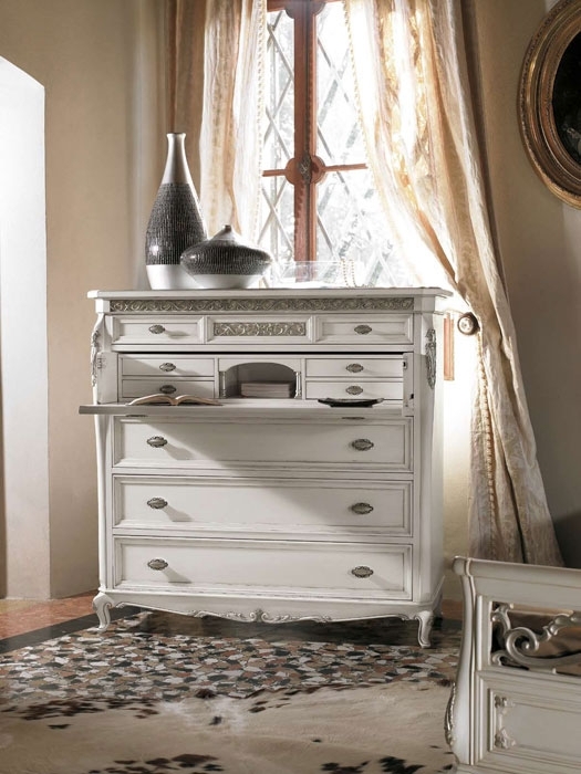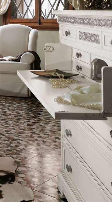 Comò con 6 cassetti esterni più 4 cassetti interni, chiusi da ribalta.