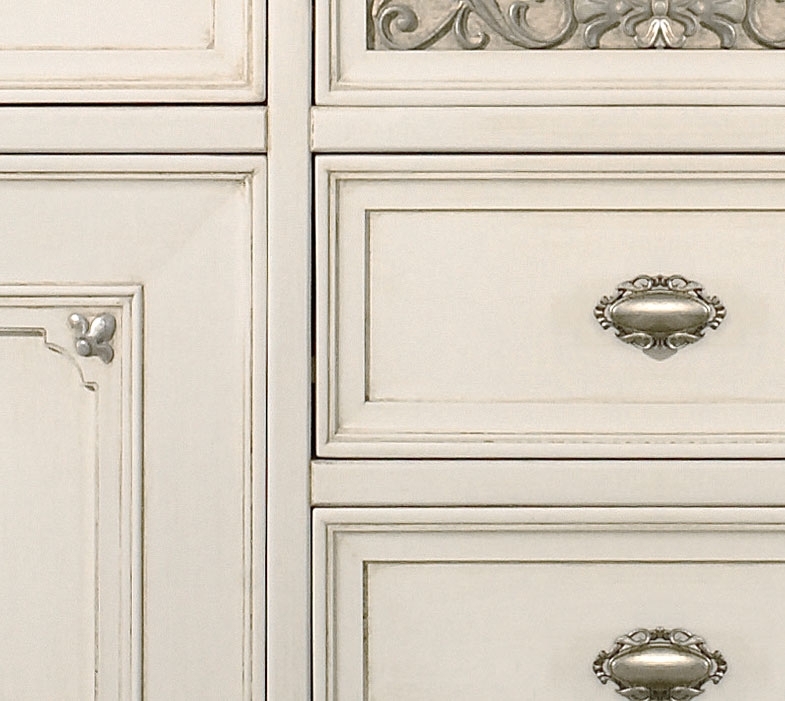 Prodotto artigianale di alta qualità , realizzato per la gran parte in legno massello di tulipier (pioppo coltivato), in particolare per la struttura, le ante e i cassetti. Fondi e ripiani sono in listellare di tanganica (noce), mentre lo schienale è in multistrato.