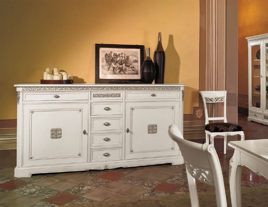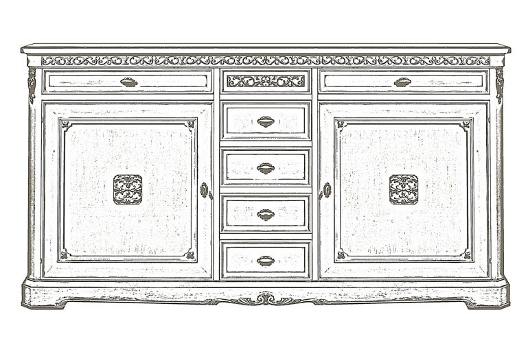 Credenza classica laccata con 2 porte e 6 cassetti.
