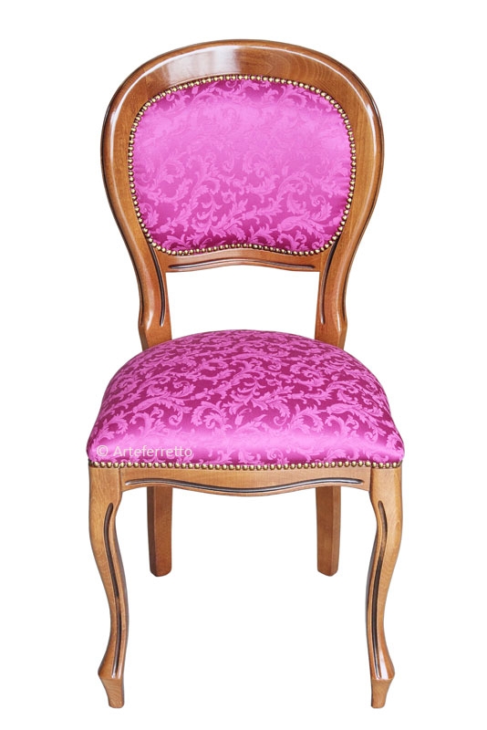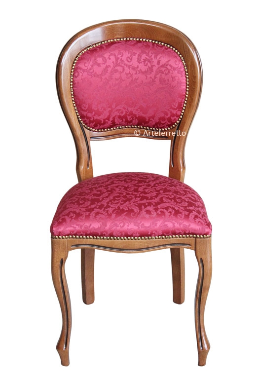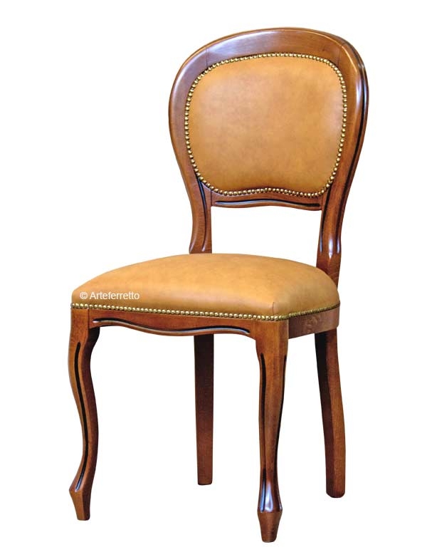 Rispetto la tradizionale sedia Luigi Filippo, questo modello aggiunge la comodità di seduta derivante dallo schienale imbottito.