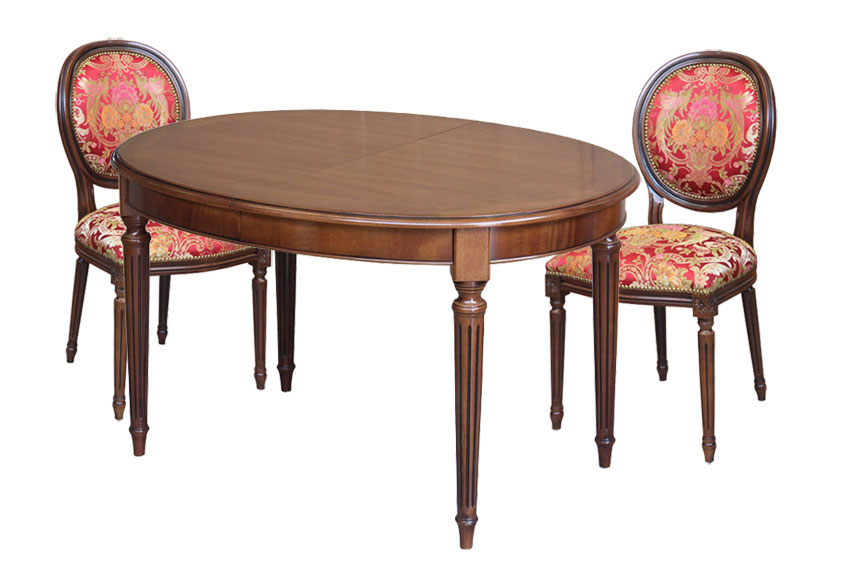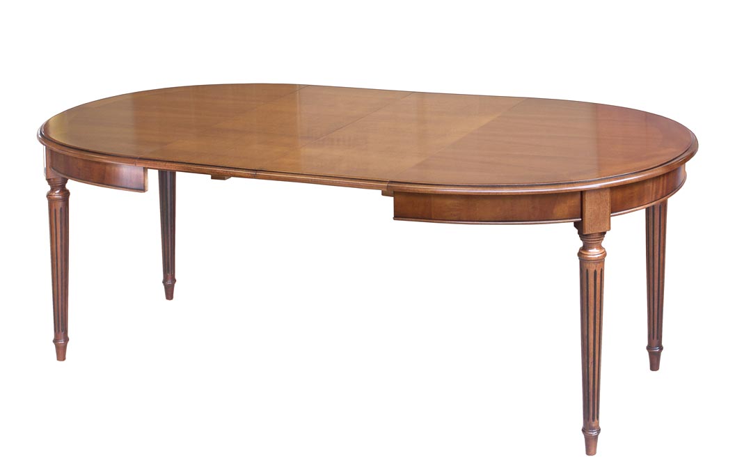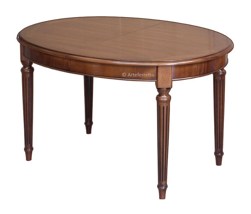 Tavolo molto raffinato, di forma ovale, con piano allungabile.