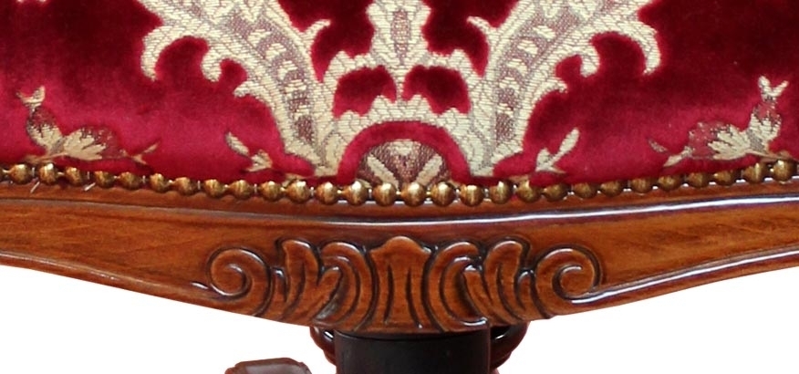 Anche per la tinta del bellissimo fusto la scelta è molto ampia: dal noce patinato della foto, al ciliegio, al Bassano o una laccatura che, eventualmente, potrà essere abbellita anche da dettagli in foglia oro o argento.