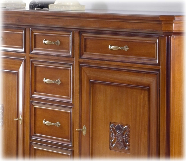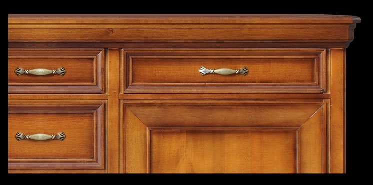 La calda tonalità del legno è esaltata da finiture di elevato valore. Un mobile adatto alle abitazioni arredate in modo classico ma che si presta ottimamente anche a case di stampo moderno: sarà il pezzo pregiato dell'arredamento!