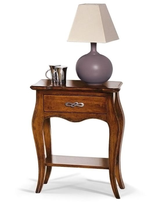 Comodino in legno massello di pioppo e toulipier dalla linea sagomata.