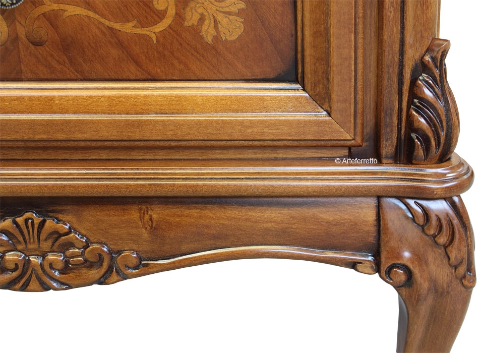 I pregiati intagli fanno da corollario ad una robustissima intelaiatura, lavorata con attenti procedimenti da maestri artigiani dalla lunga esperienza.