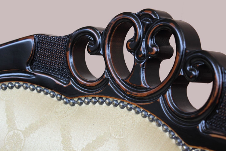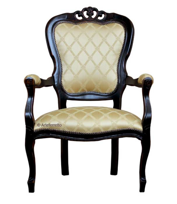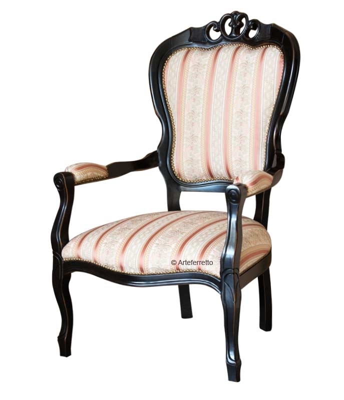 Si tratta di un oggetto particolare che crea stile in ogni contesto ove sia inserito. Lo stile del tempo, dato dalla caratteristica laccatura nera che con effetto anticato lascia trasparire tracce di antico ciliegio, ha su questa poltrona un effetto decisamente sorprendente.