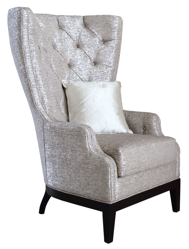 Lo schienale, molto alto e dalla forma avvolgente, spicca per la bella lavorazione capitonné.