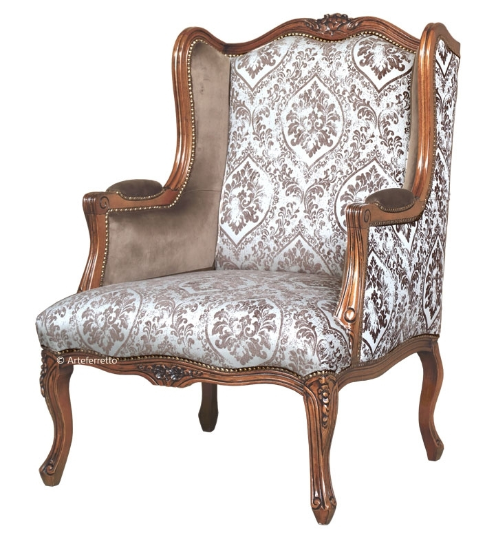 Maestosa poltrona Bergère che abbina alla tipica forma classicheggiante un rivestimento decisamente alla moda.