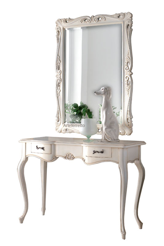 Consolle stile classico che, per le sue linee armoniose ed eleganti, si abbina con qualsiasi tipo di specchio, quadro e parete.