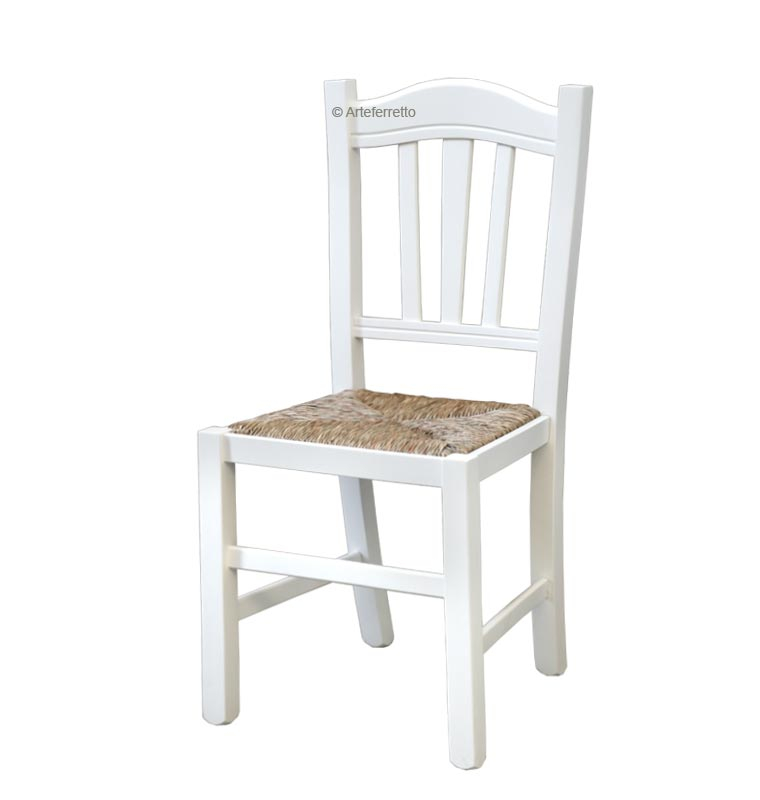 Sedia classica laccata di grande robustezza, perfettamente rispondente alle esigenze di un uso intenso e quotidiano.