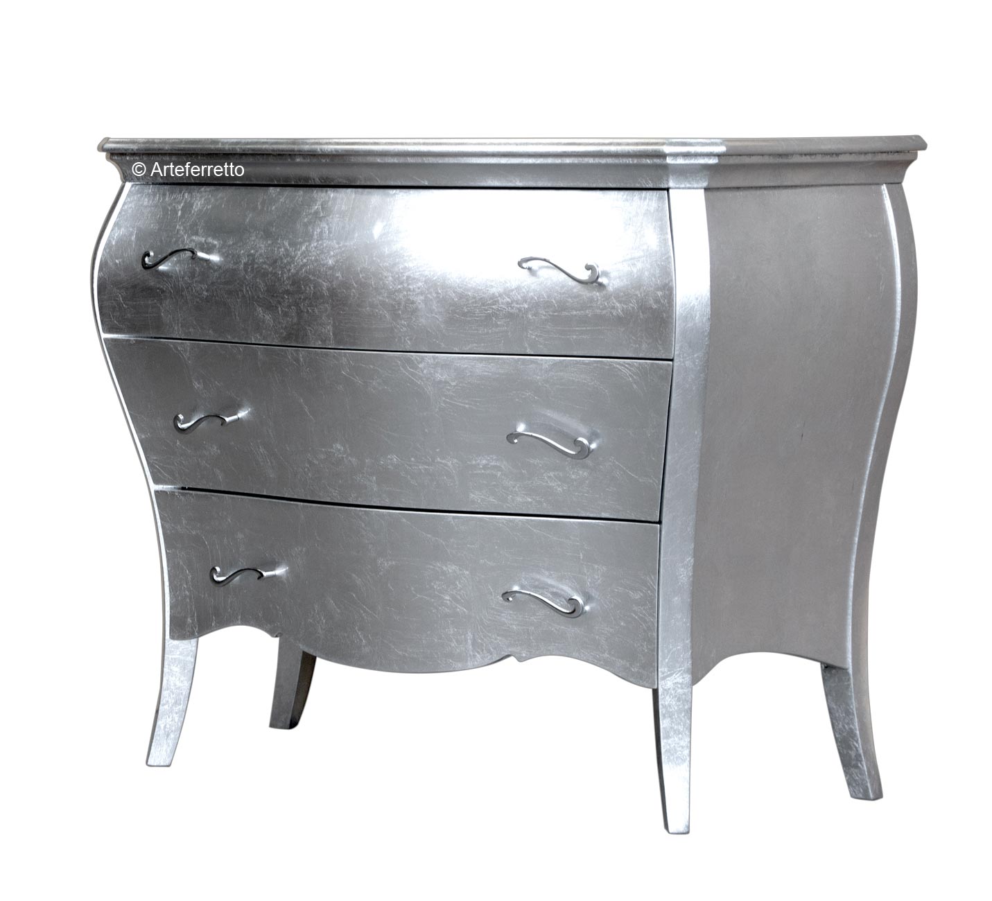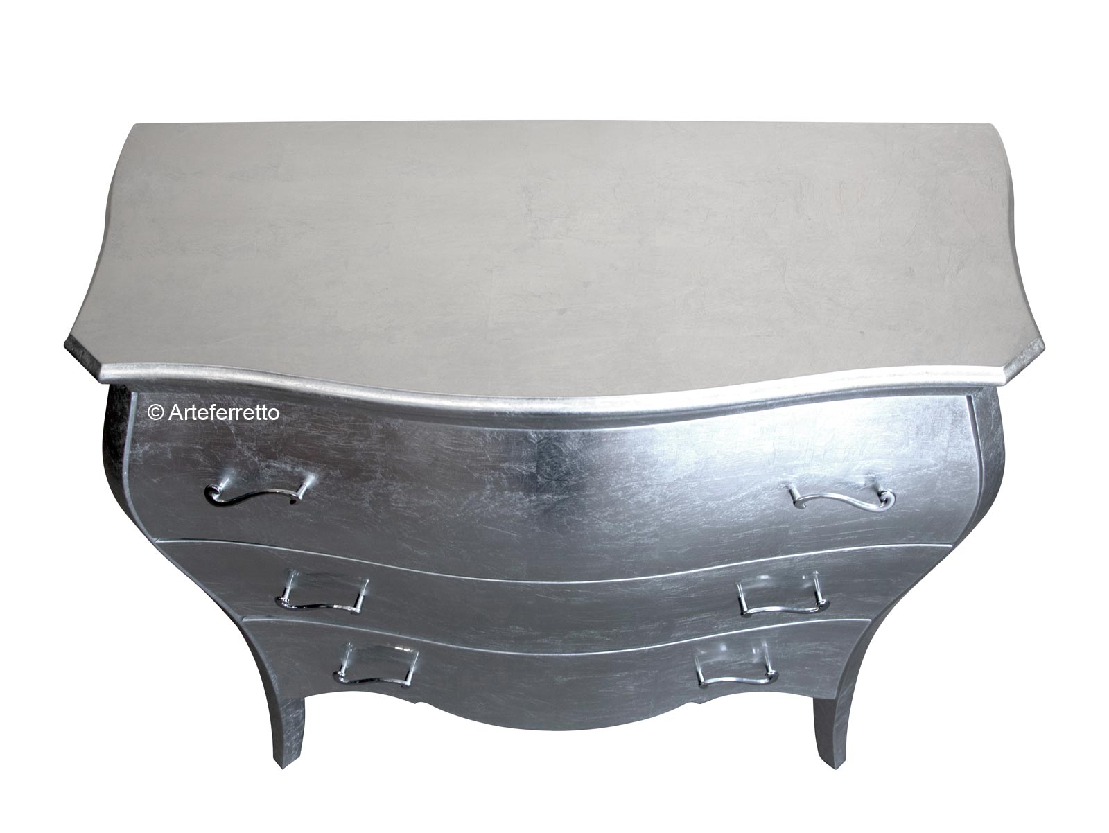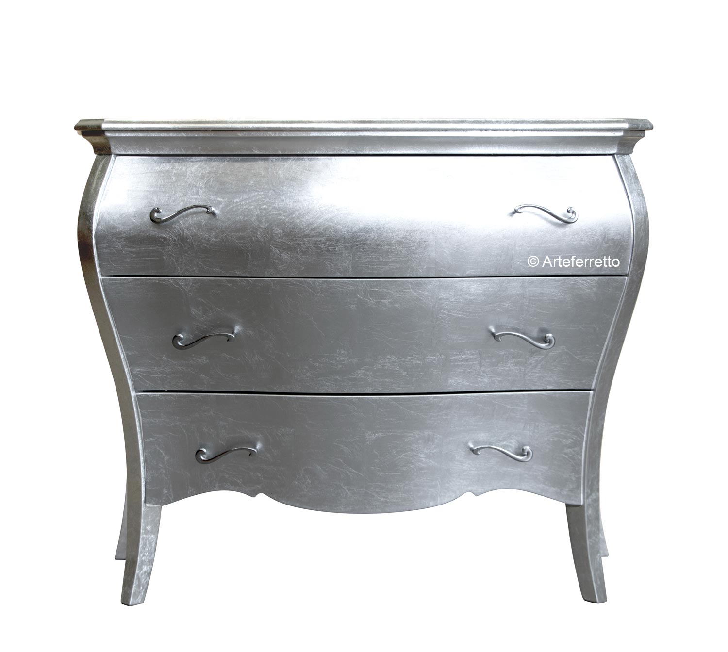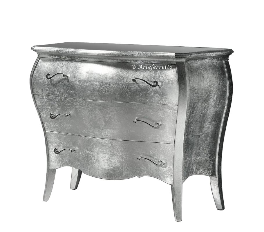 Specchiera foglia argento di grande personalità, si pone come protagonista dell'ambiente che illuminerà con la sua classica presenza.In questa specchiera la cornice è davvero imponente, su legno massello con decorazioni intagliate ed applicate, con una larghezza della stessa di ben 13,5 cm.Il profilo, grazie alle particolari lavorazioni, esalta lo stile classico della struttura, valorizzata in modo deciso nella parte superiore da un elemento stilizzato prezioso ed originale.Specchiera foglia argento, che può essere rifinita anche in foglia oro, applicata a mano e resa più affascinante dalla dosata patinatura, anch'essa applicata manualmente.Specchiera elegante di grande valore capace di dare un'impronta decisa all'intero arredamento dell'ambiente.Questa specchiera è ideale per la zona giorno o la zona notte come l'ingresso, la camera da letto o il salotto.Dimensioni:esterne: 90 x 135 cm;Interne: 63 x 94 cm.