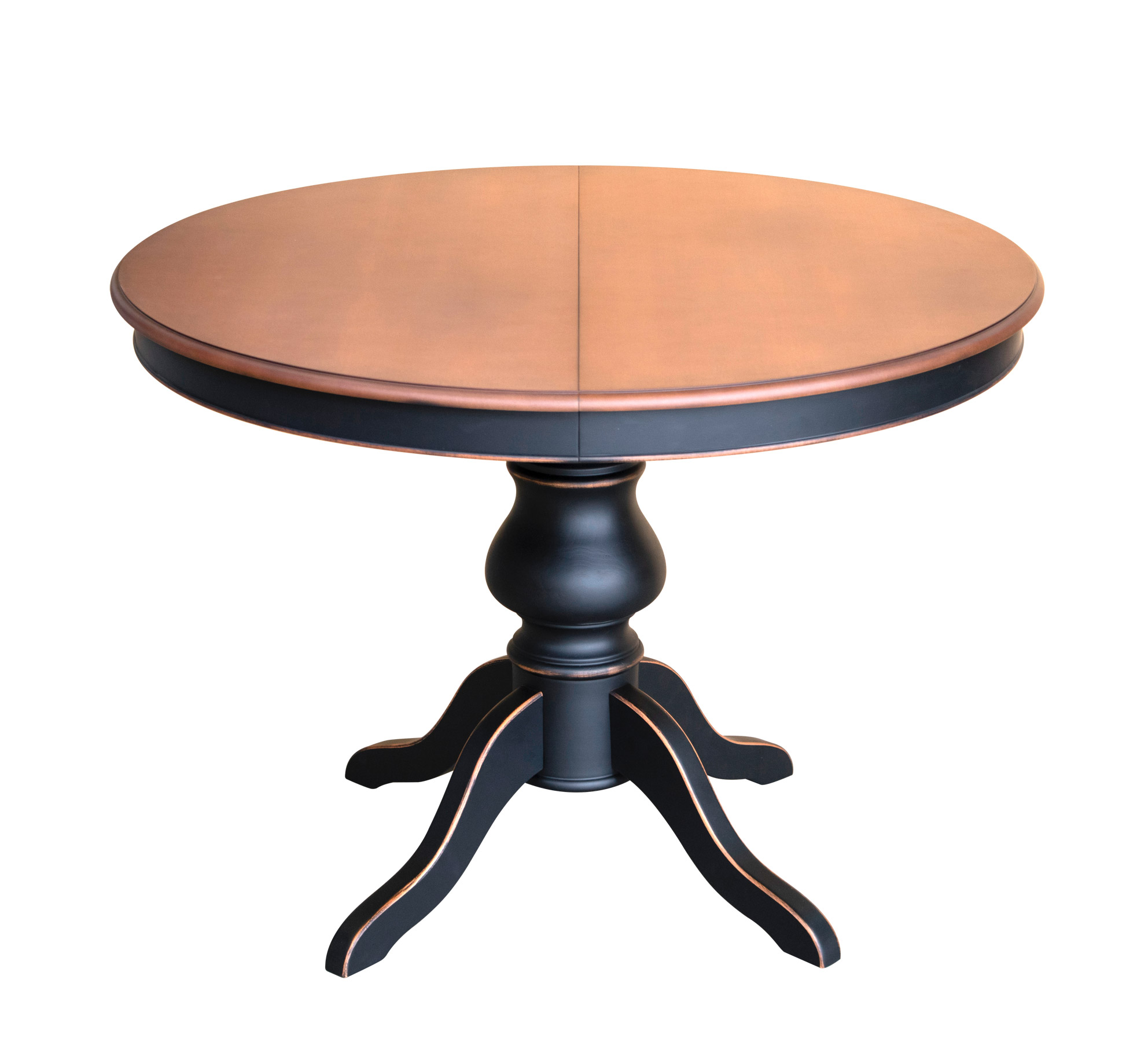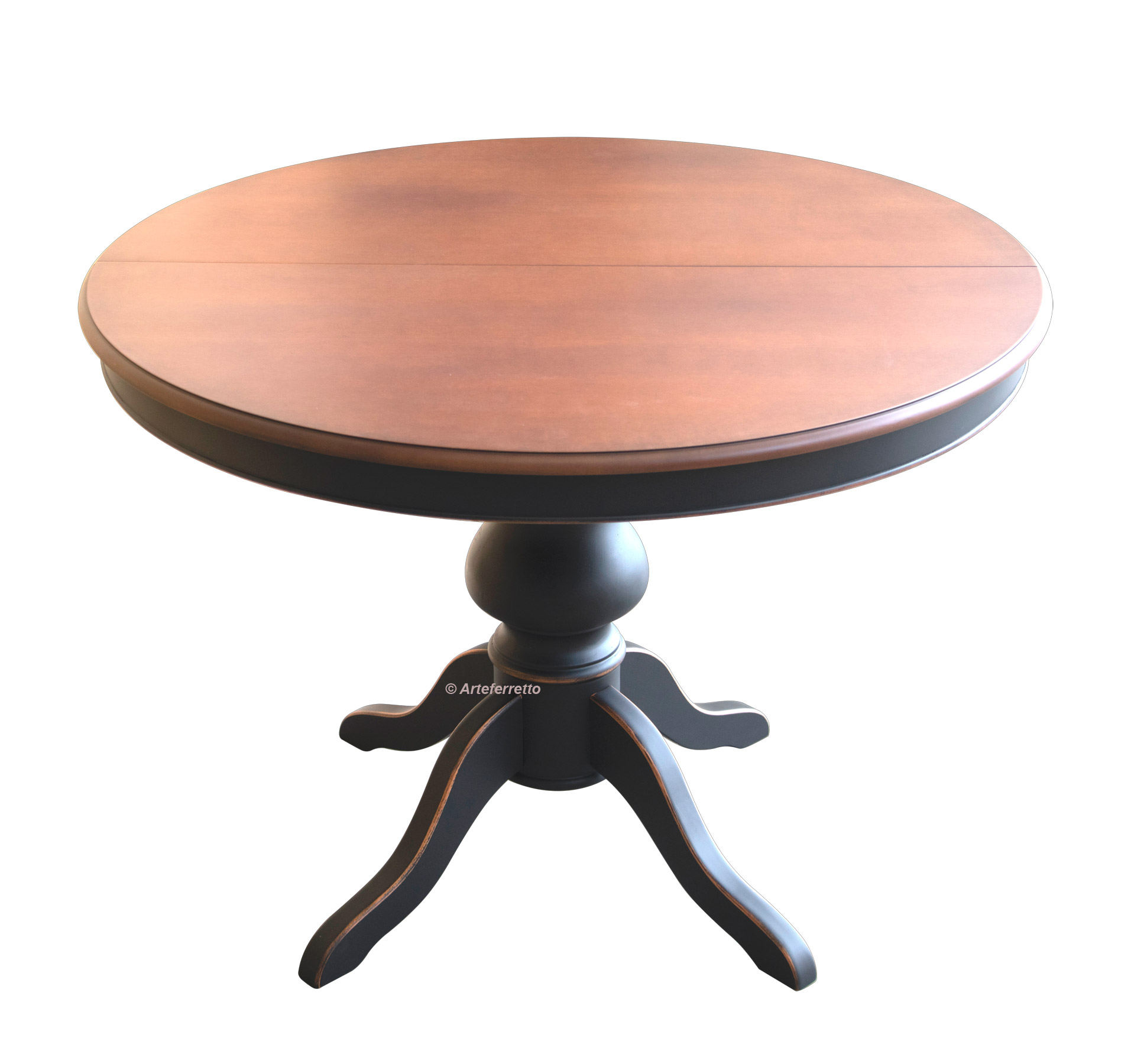Tavolo bicolore rotondo, dallo stile classico e raffinato.