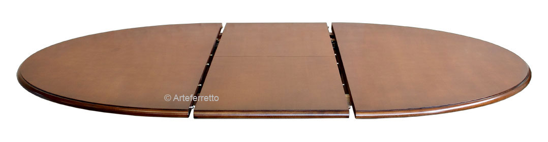 La laccatura della parte inferiore, mette elegantemente in risalto il piano dalla finitura classica. Grazie ad un semplice e pratico sistema di allunghe, questo tavolo bicolore può raggiungere l'estensione necessaria per condividere piacevoli momenti in compagnia.