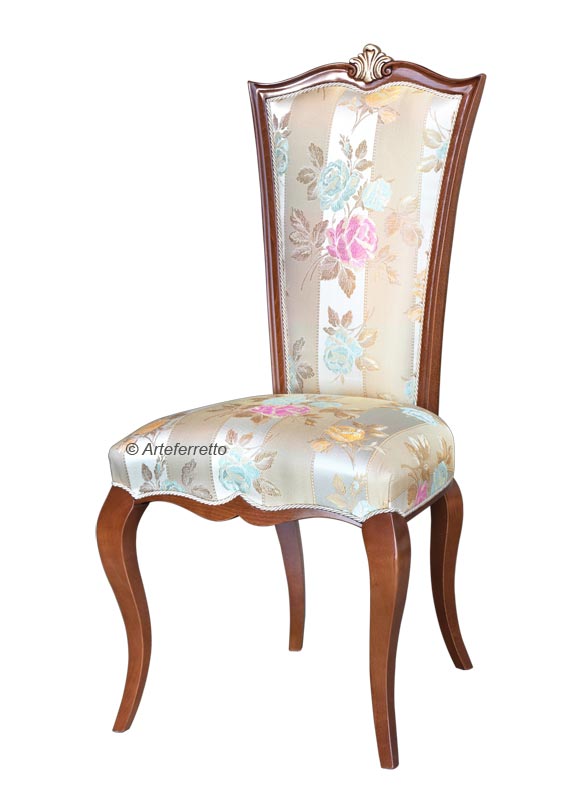 Sedia intramontabile. La collezione "Versus" trova in questo modello un oggetto che ne rappresenta interamente l'eleganza e la classe, infatti, la perfetta trama, con l'intrigante motivo di stile che caratterizza la collezione, rende questo tessuto perfettamente integrato all'elaborato telaio in legno massello.