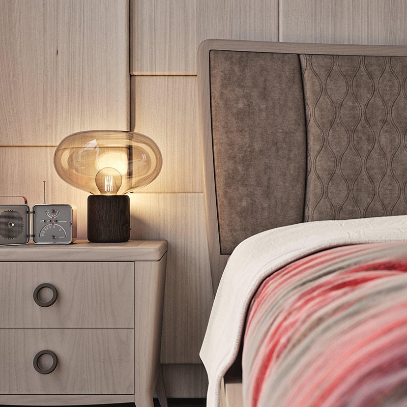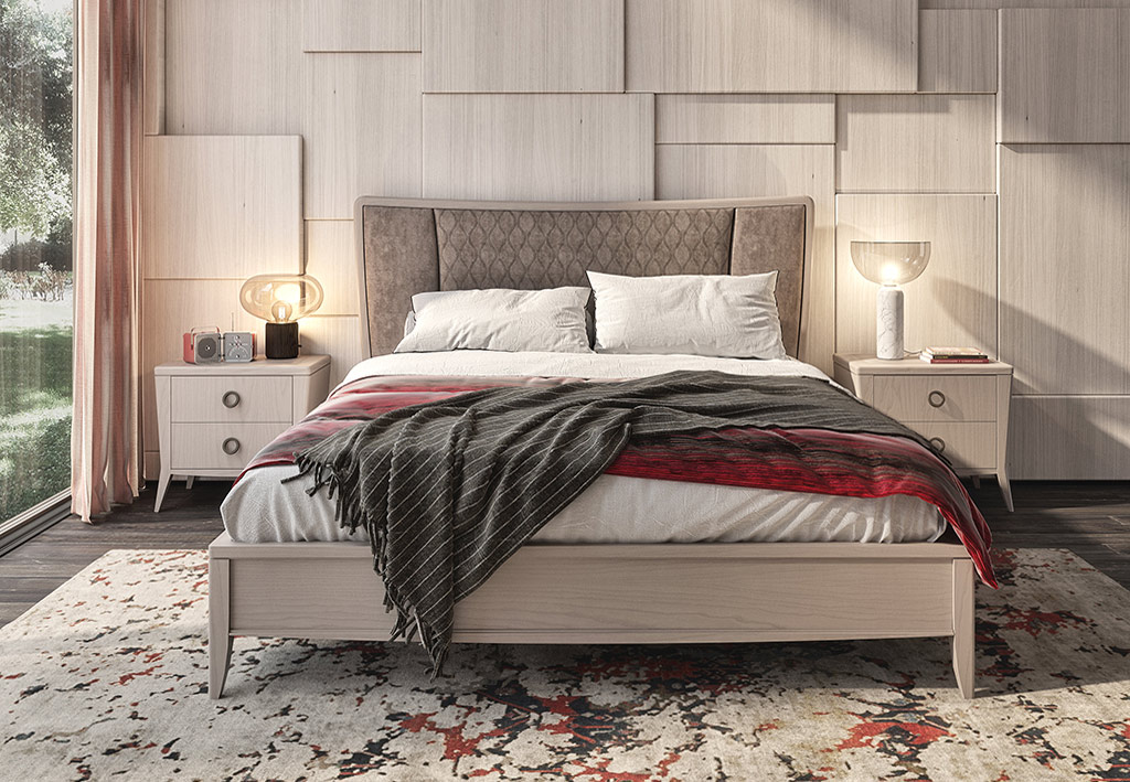 Struttura robusta e linea classico contemporanea per adattarsi con estrema disinvoltura ad esigenze di arredo della zona notte eleganti e funzionali.