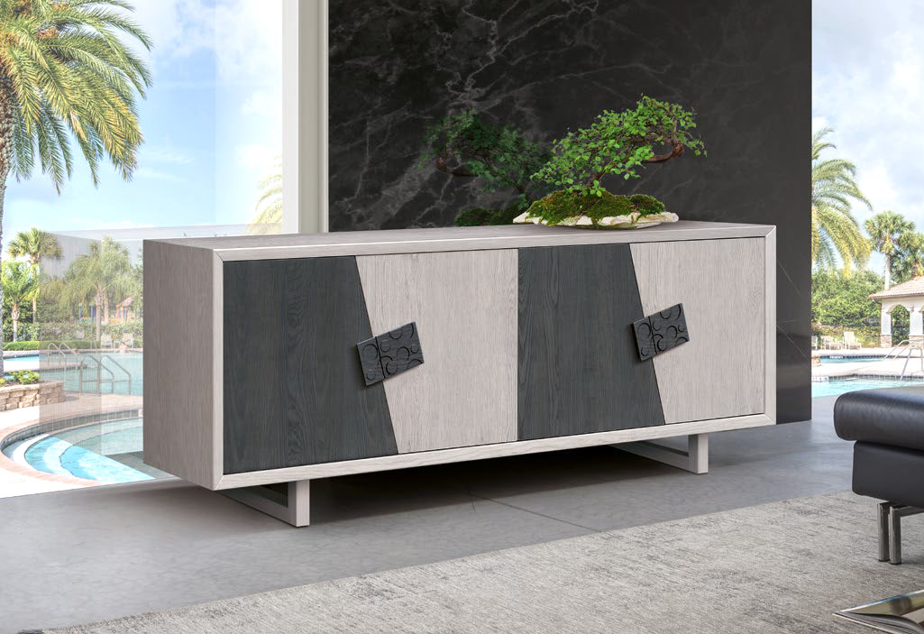 Madia in legno di frassino per arredare un salotto in stile contemporaneo.