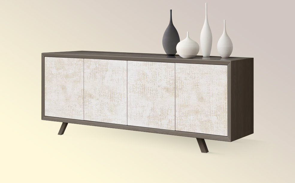 4 ante rifinite con speciale effetto paglia di Vienna, dotate di sistema di apertura push pull.