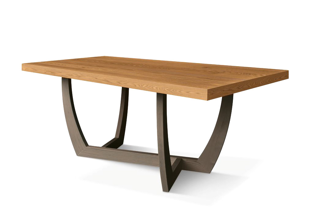 Questo tavolo, dalle forme geometriche in libertà, porta nell'ambiente contemporaneo la bellezza e la tradizione del tavolo possente, solido, pesante, in un legno fatto per durare e dare assoluta affidabilità.