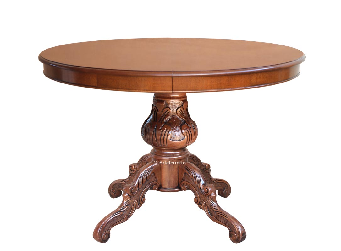 Bellissimo tavolo rotondo allungabile, solido e funzionale, si fa notare per la sua linea piacevolmente classica.