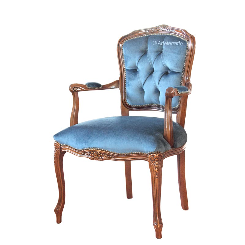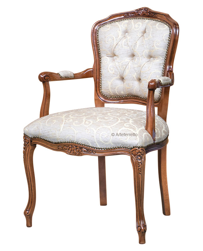 Raffinata poltroncina Parisienne arricchita da pregiata lavorazione capitonné sullo schienale. Questo particolare rende certamente più stilizzata e completa la linea di questa graziosa poltrona.