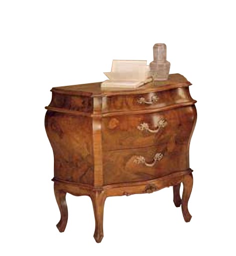 Bellissimo comodino dalla linea bombata con elementi di radica a renderlo davvero un capolavoro.