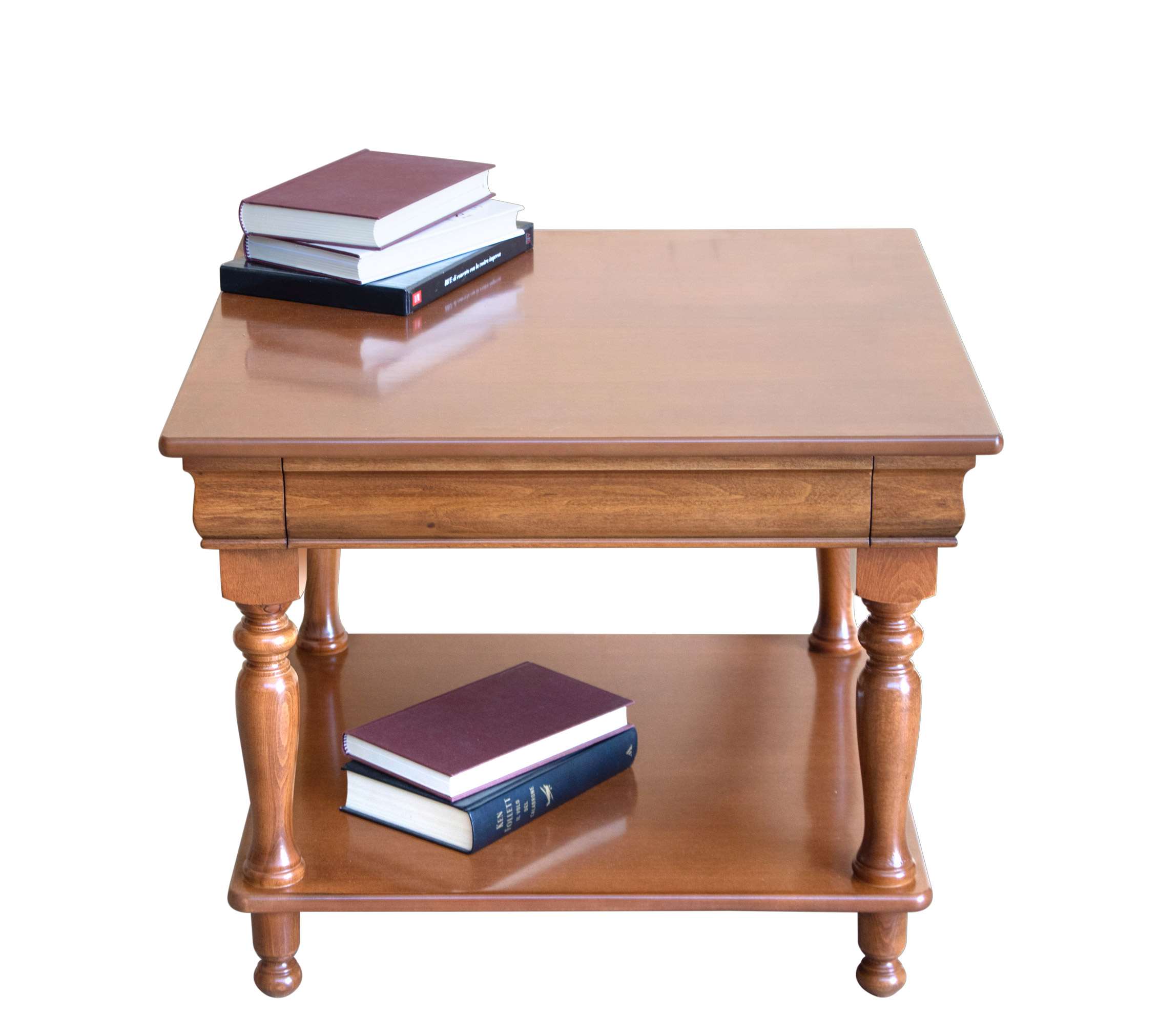I materiali utilizzati per questo tavolino sono di prima qualità: legno massello di faggio e toulipier per una struttura robustissima, piani in MDF con strato in legno naturale di noce tanganica per un aspetto dalla calda tonalità.