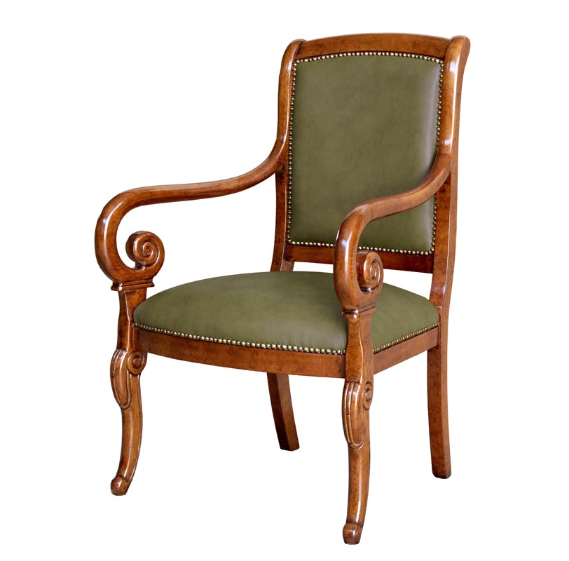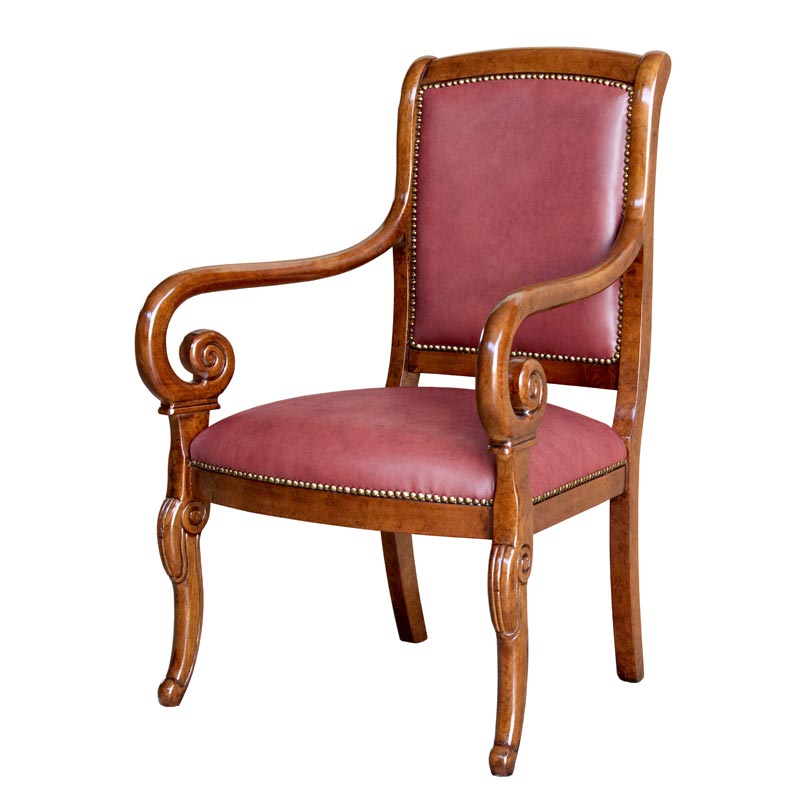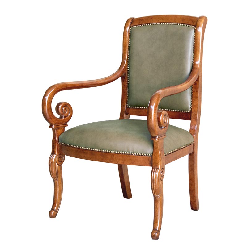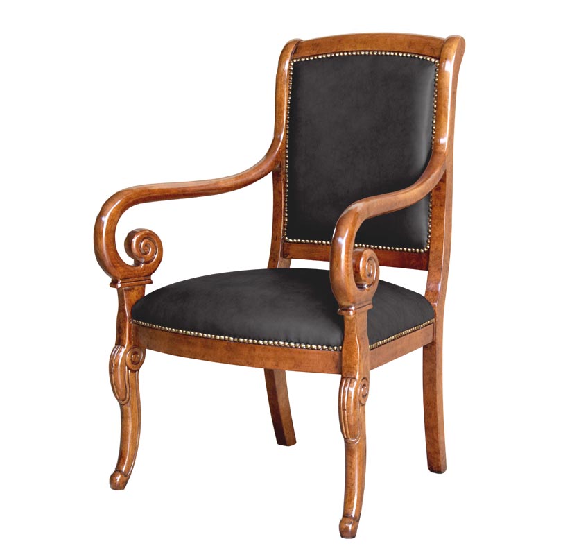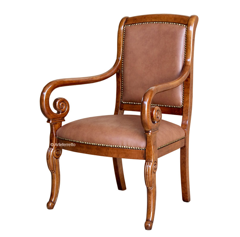 La struttura, particolarmente armoniosa nella parte anteriore, offre un raccordo molto classico tra braccioli e gambe.