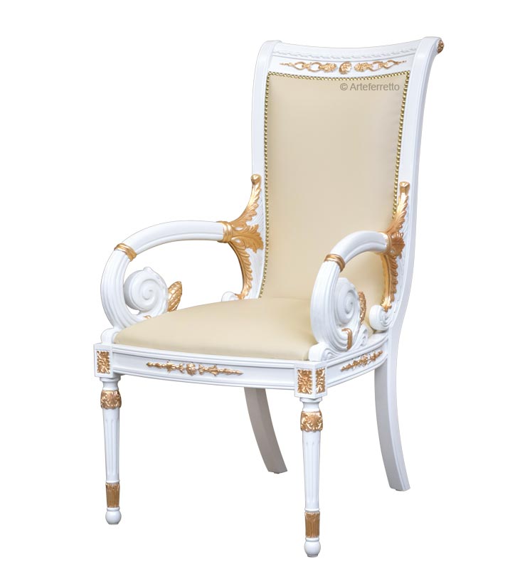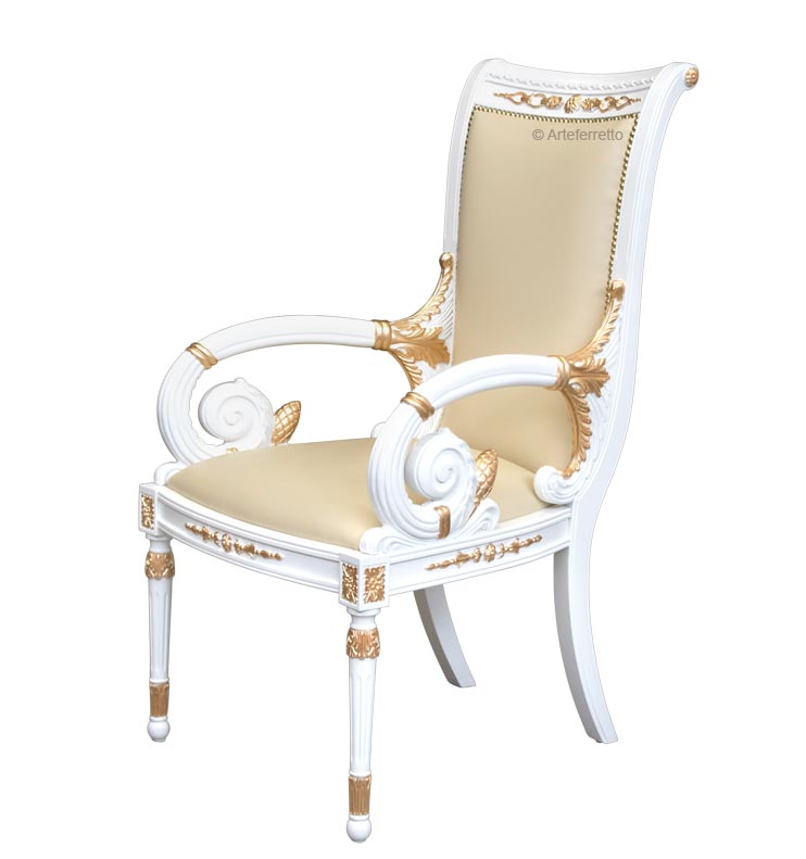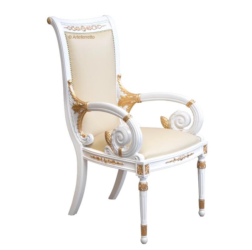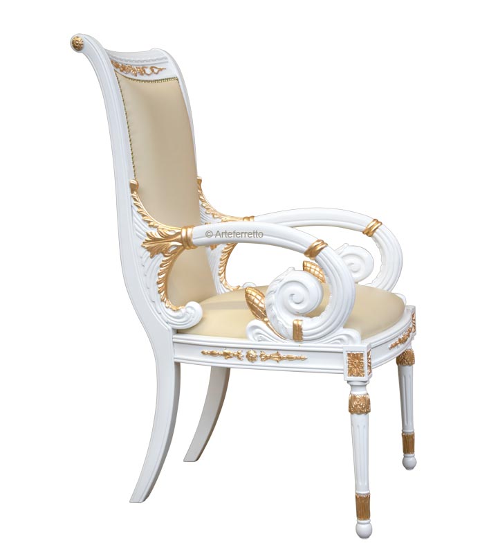 Utilizzabile come elemento d'arredo in sale da pranzo maestose o come seduta per ambienti importanti, questa sedia attirerà l'attenzione sui suoi perfetti particolari immergendovi in un mondo di fantastica e luminosa classicità.